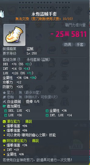 永恆盜賊手套:3500(含剪或完美回真)
