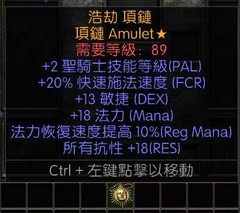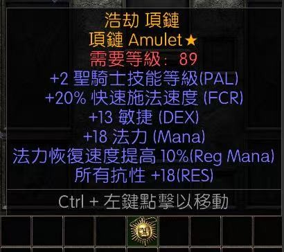 手工項鍊,2聖騎士技能,20施法,13敏捷,18全抗