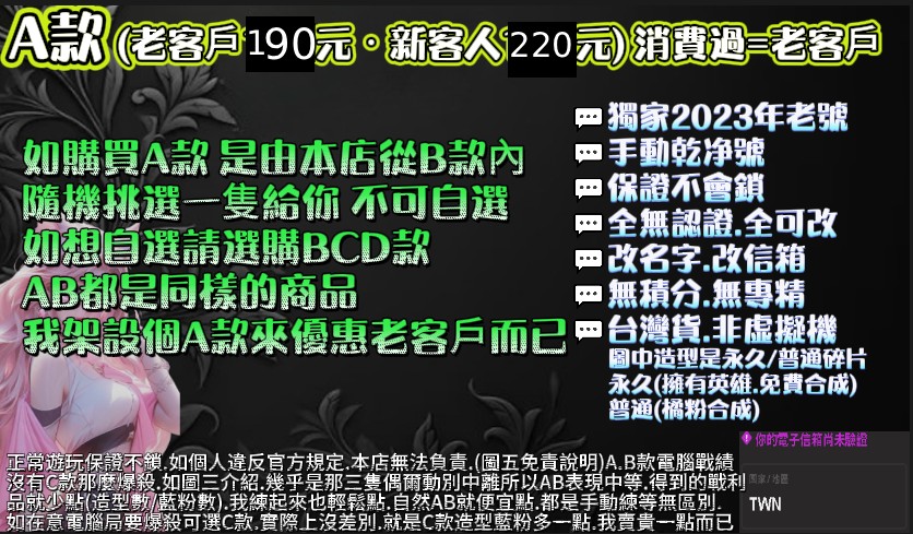 🔹台灣貨 自產自銷:註冊時填寫的生日 信箱 每隻都不同,不怕盜號找回(如一樣會被盜號 詳情問我)