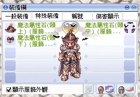 *搭配思念體破壞因子研究錄劍士篇(對全體型魔法攻擊+15%.創世之光傷害+30%)