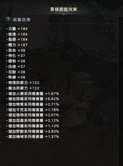 圖鑑效果(未包含寵物專長):惡魔傷5.52%/野獸傷3.8%