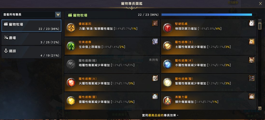 寵物專長:牧場全滿傳說(剩暗屬性傷害減少)
