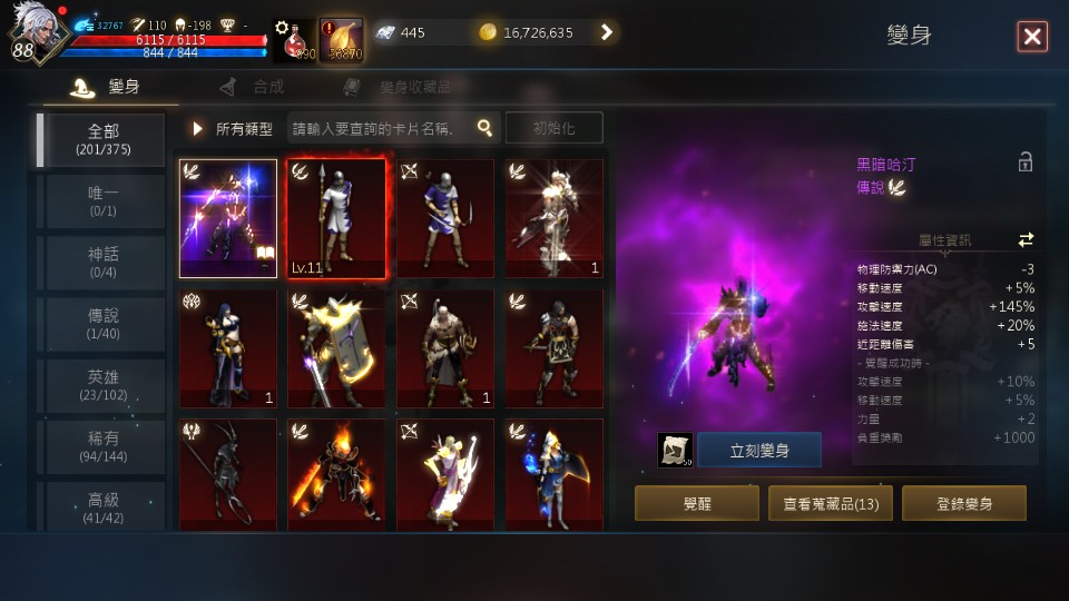 【龍鬥士、88等、席琳】名譽幣810萬 1紫6紅技 可交易+7紅武2把 刻印紅5件