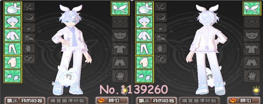 上衣、下衣、手套、鞋子給後綁定,需出各部位衣櫥 + 白封 *4;髮型、武器、髮箍全新,給後1封;均可上衣櫥