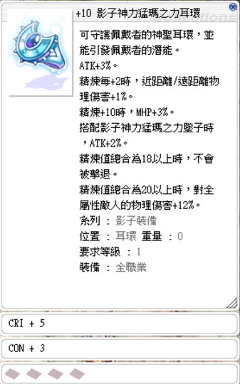 🍊㍿:+20影子神力猛瑪耳環+墜子,可幫轉鎧甲+戰靴【CRI+9 CON+3】