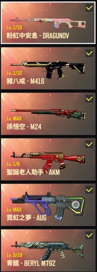 10等孫悟空M24 10等霓虹AUG 5等BERYL青龍 女團全套