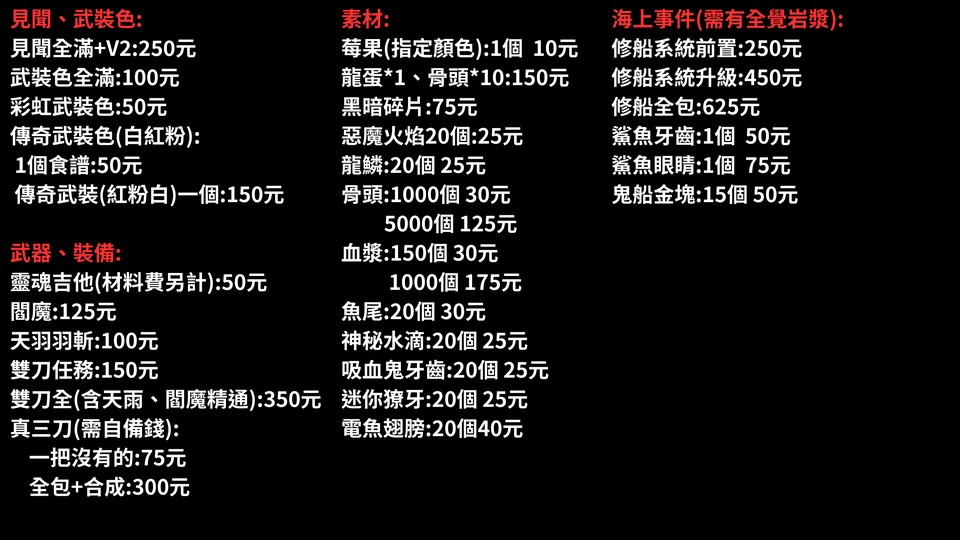 要刷東西錢和F要自備,要確定錢和F幣要夠再來找喔,如果是代刷F幣的需要自備果實,沒有自備(到三海才能刷)需要多花錢,也會用比較久