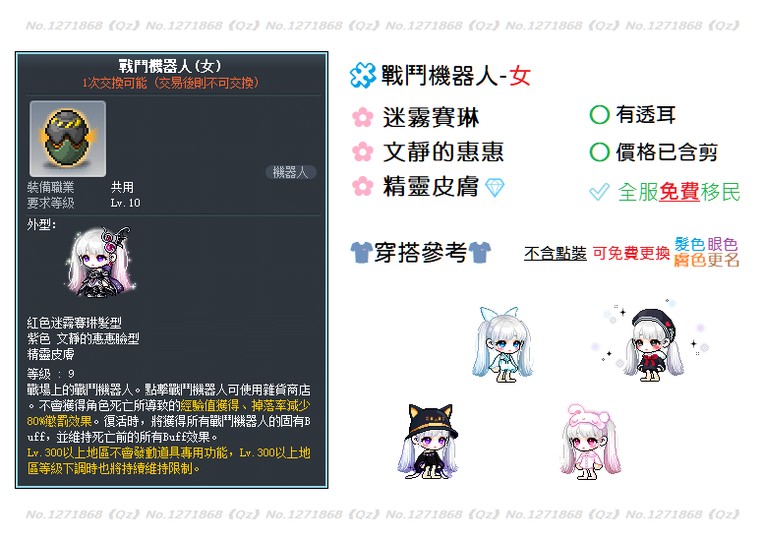 【戰鬥機器人(女)】《已整好透耳戰女》《全服免費移民》《迷霧賽琳+文靜的惠惠》🍁【Qz】
