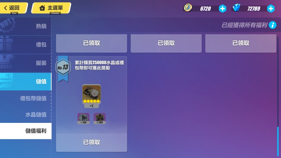 水晶剩1w3 (角色池已墊到只剩13