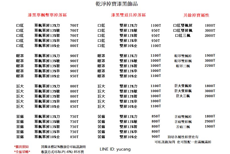 各%屬無限交易乾淨漆黑掉寶裝 雙掉 單楓單掉 楓掉 雙楓掉 雙掉楓 三楓