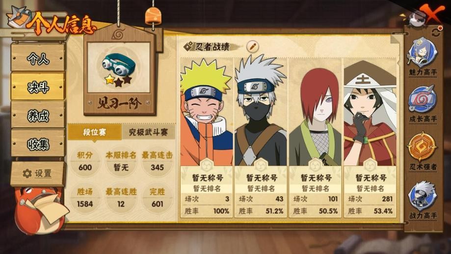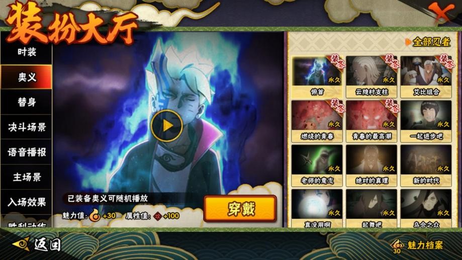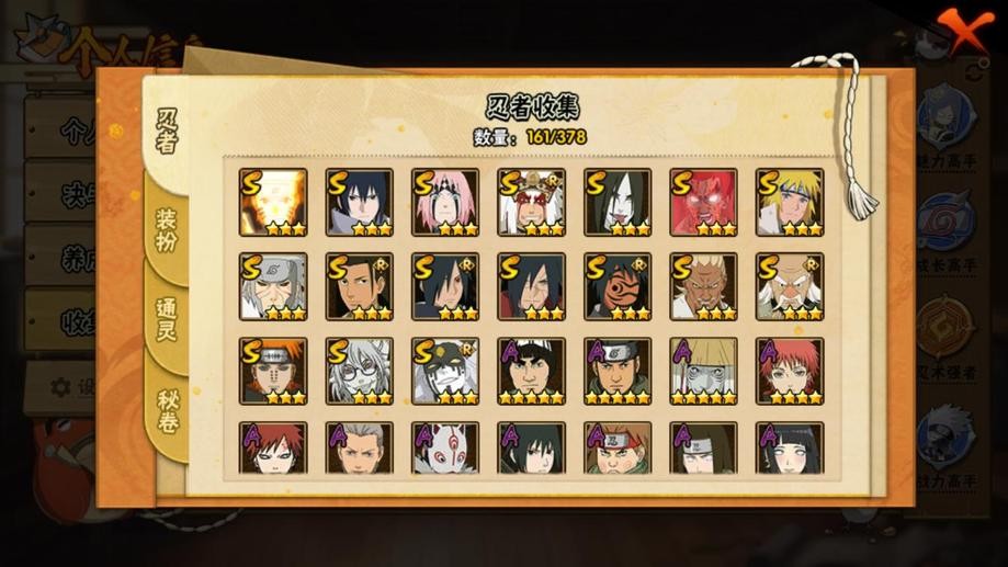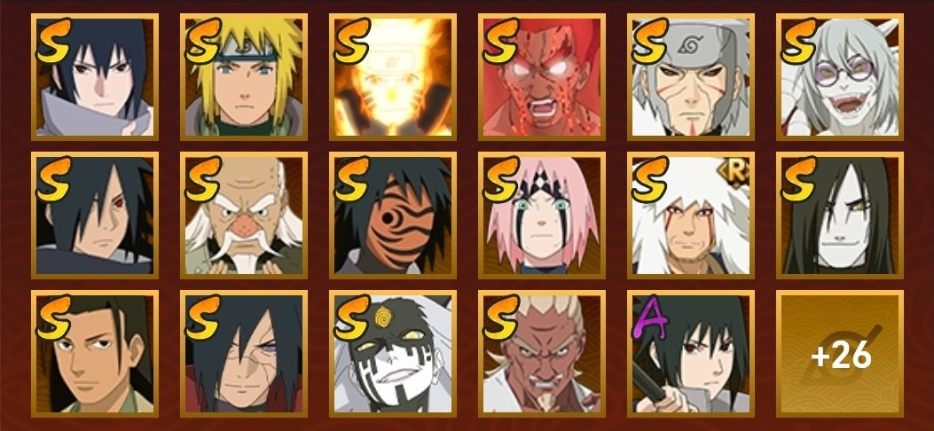 水門,忍戰櫻,博人傳桃式,忍戰大野木,大蛇丸,死門凱,創立柱間,穢土扉間,紅夜帶土,九喇嘛鳴人,永恆萬花筒佐助,穢土解斑,仙人兜,創立斑,舞之豪傑自來也,忍戰艾,青年艾,青年水門,博人傳達魯伊,穢土迪達拉,飛段,死司飛段,鬼鮫,俠隱綱手,博人傳黑土,凱,漂泊六道,奇拉比,忍戰丁次,近松十人衛千代,忍戰寧次,忍者之路面具男,疾風傳我愛羅,桃式顯現博人,蠍,小南,漂泊小南,阿斯瑪,須佐佐助,最終章雛田,真容卡卡西,六代水影,青年長門