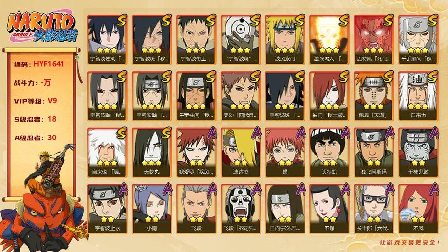 【HYF1641】V9/S忍18/A忍30/穢土長門/穢土扉間/穢土柱間/穢土鼬/穢土解斑/忍戰帶土/須佐鼬/創立斑/四代風影/自來也/舞之豪傑自來也/大蛇丸/水門/九鳴人/死門凱/天道/永恆萬花筒佐助/白面具/青年艾/不緣/不風/青年水門/百豪櫻/迪達拉/穢土迪達拉/曉大蛇丸/飛段/死司飛段/鬼鮫/凱/奇拉比/忍戰奇拉比/忍戰丁次/近松十人衛千代/忍戰寧次/疾風傳我愛羅/忍戰我愛羅/桃式顯現博人