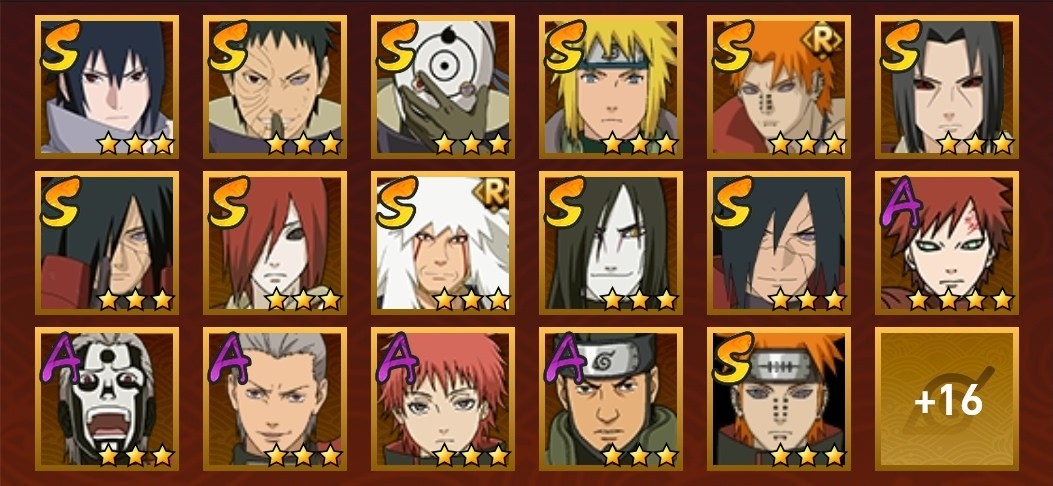 凱,青年水門,近松十人衛千代,奇拉比,青年長門,地怨虞角都,曉大蛇丸,鼬,鬼鮫,穢土迪達拉,六代水影,博人傳黑土,永恆萬花筒佐助,舞之豪傑自來也,大蛇丸,水門,穢土斑,穢土解斑,穢土鼬,白面具,忍戰帶土,天道佩恩,天道超,穢土長門,疾風傳我愛羅,阿斯瑪,蠍,飛段,死司飛段,須佐佐助,疾風傳咒印佐助,忍戰丁次,忍戰寧次