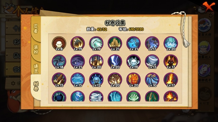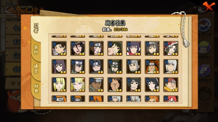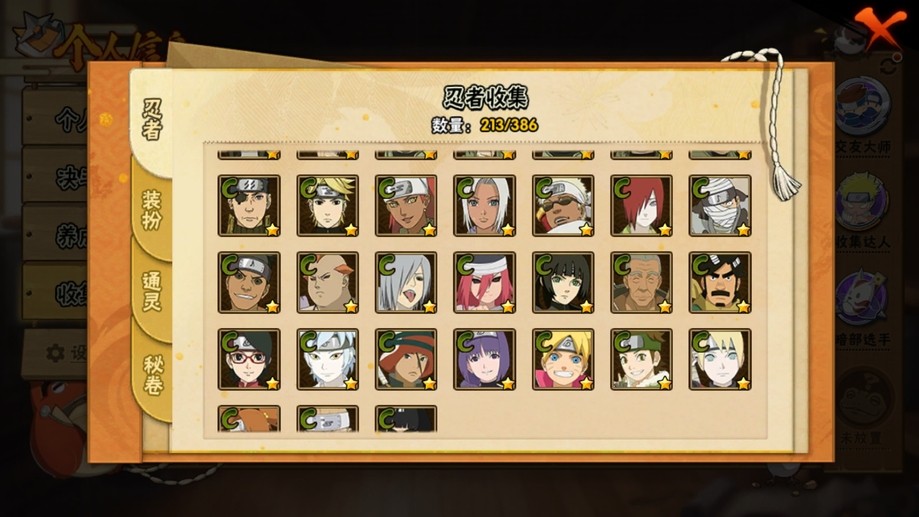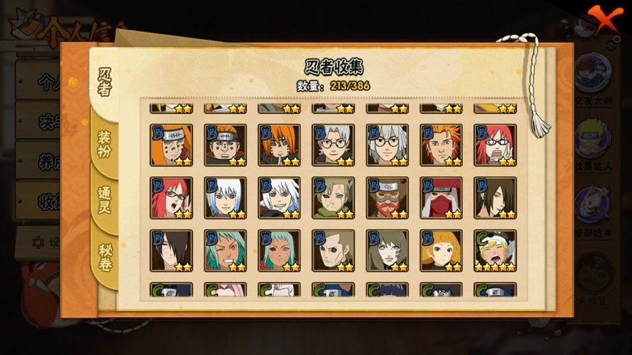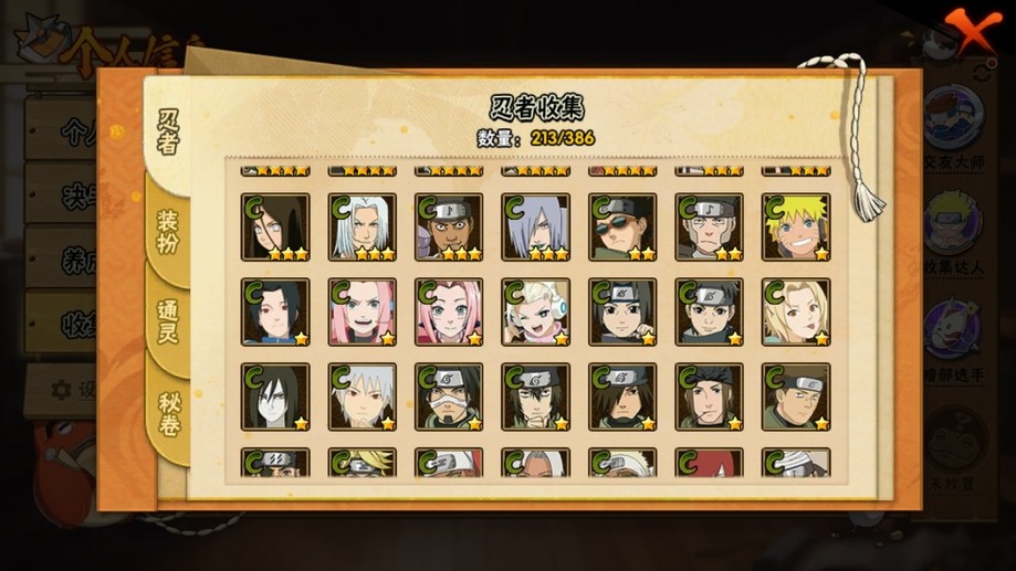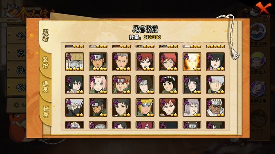 鬼鮫,阿斯瑪,飛段,疾風傳我愛羅,蠍,九尾鳴人,萬花筒佐助,須佐佐助,百豪櫻,忍戰丁次,忍戰寧次,忍戰李,最終章雛田,真容卡卡西,萬花筒卡卡西,穢土阿斯瑪,新春止水,青年水門,忍戰我愛羅,近松十人衛千代,奇拉比,九喇嘛鳴人,永恆萬花筒佐助,忍戰櫻,舞之豪傑自來也,大蛇丸,百豪綱手,死門凱,水門,穢土水門,穢土日斬,穢土斑,創立斑,白面具,忍戰帶土,二代土影,天道佩恩,穢土長門,仙人兜,金式,凱,青年艾,斗篷兜,不緣,青年長門,漂泊六道,地怨虞角都,曉大蛇丸,鼬,新春鼬,夏日鼬,穢土迪達拉,死司飛段,博人傳木葉丸,桃式顯現博人,博人傳達魯伊,六代水影,博人傳黑土,須佐卡卡西