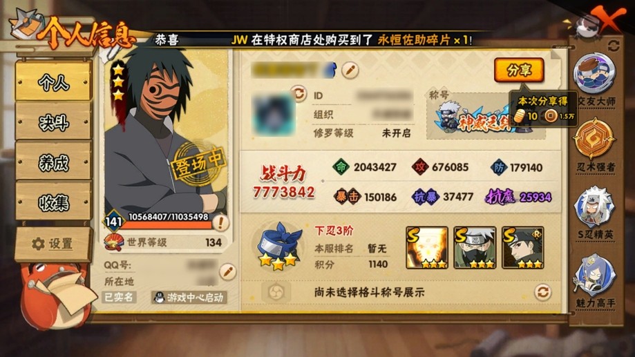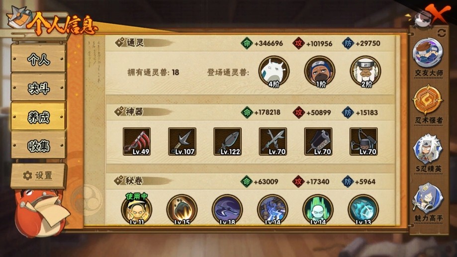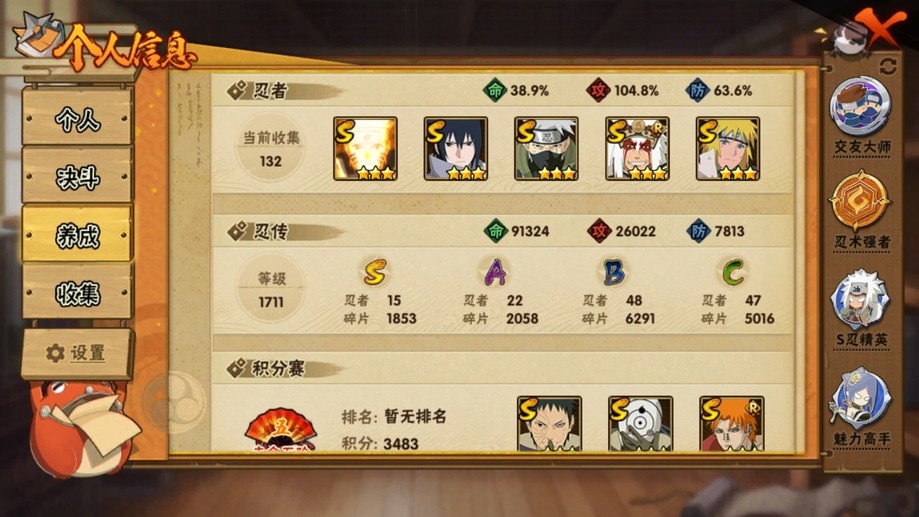 準17s,21475金幣3個98通25高招,小櫻69死鼬45舍人40長門28,a忍十幾片的挺多的