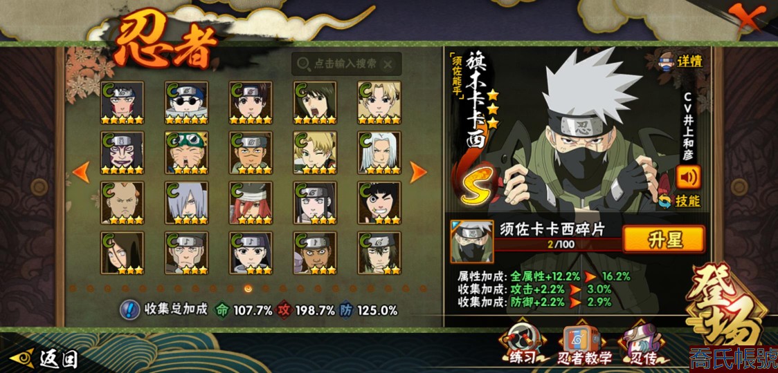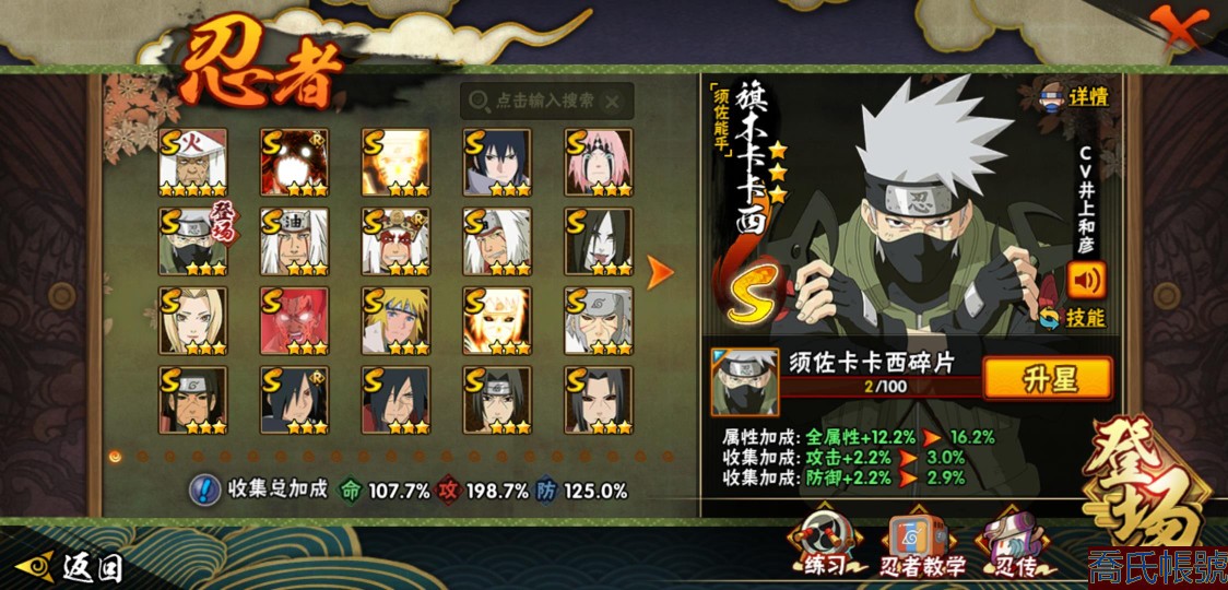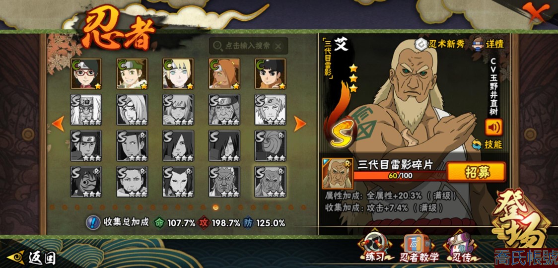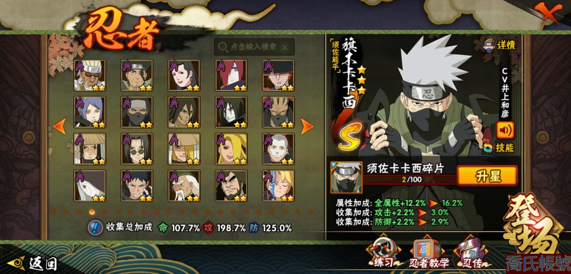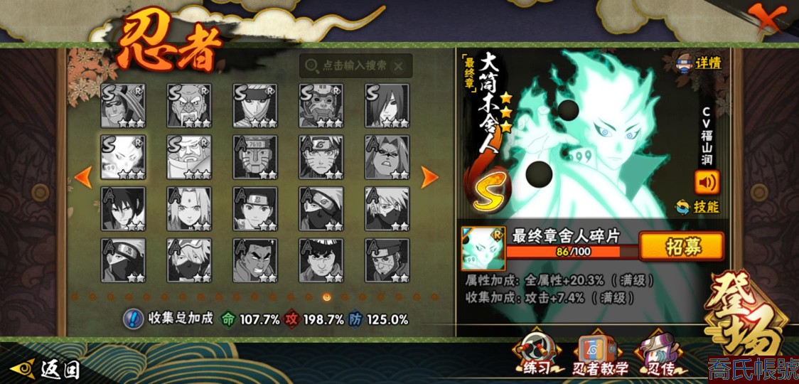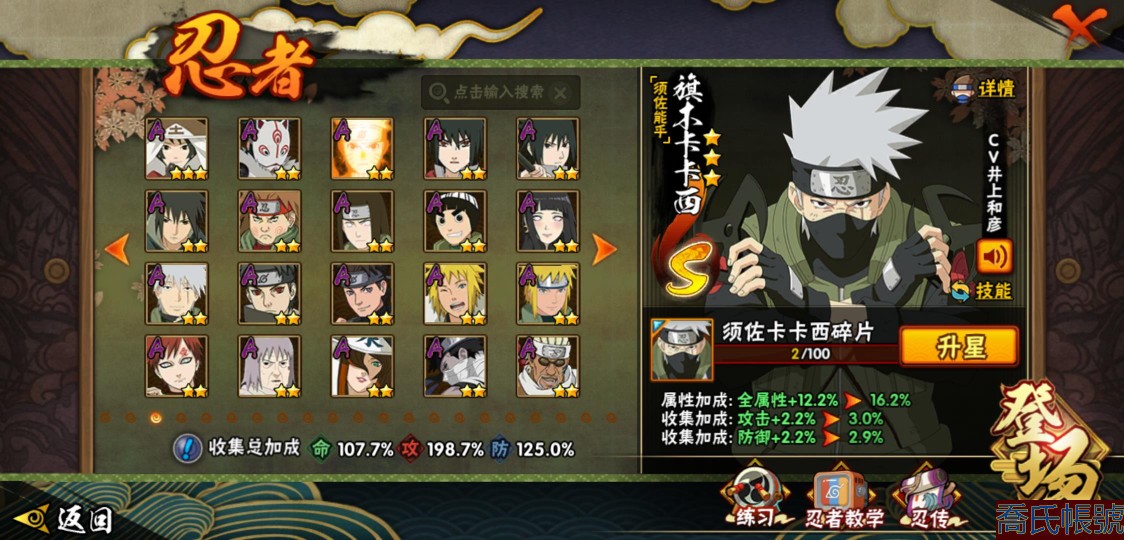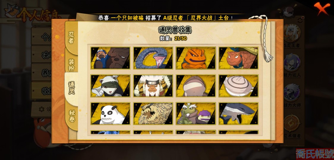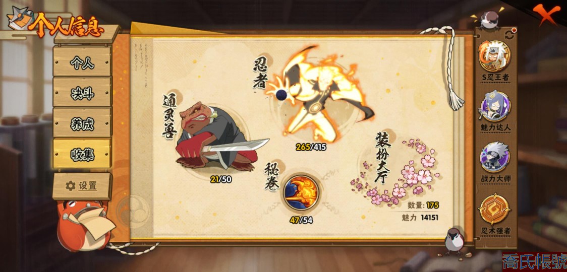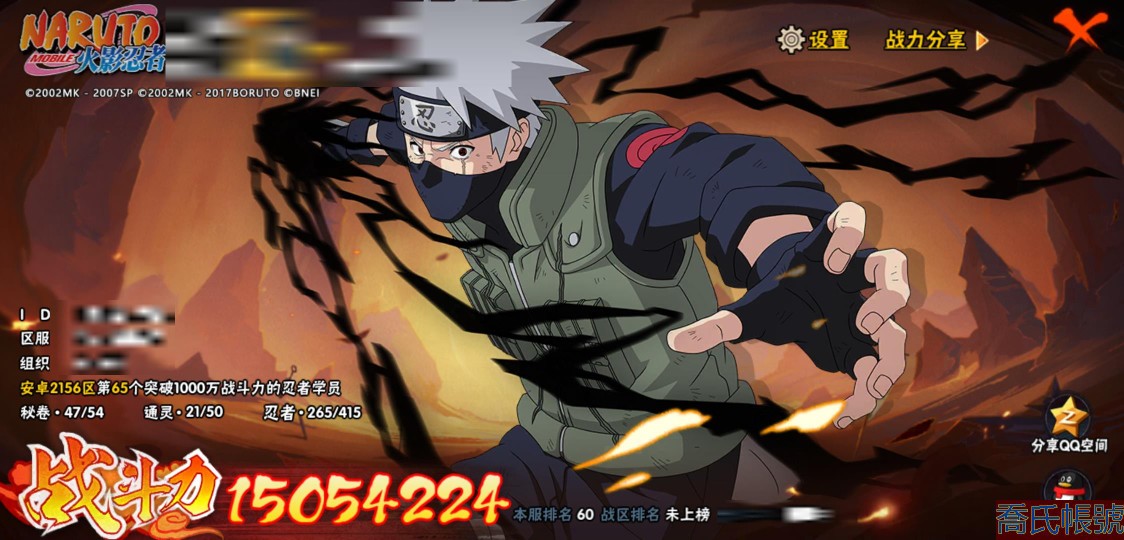 【OBHXDNK958542】戰鬥力:1505W+;段位:暗部2階;本服排名:60;戰區排名:未上榜;VIP12級;S忍32個;A忍50個;通靈獸21個;S忍:猿飛日斬(5星),暴怒第六尾漩渦鳴人,九喇嘛連結漩渦鳴人,永恆萬花筒宇智波佐助,忍界大戰春野櫻,須佐能乎旗木卡卡西,自來也,舞之豪傑自來也,傳說中的三忍自來也,大蛇丸,綱手,死門邁特凱,波風水門,九喇嘛連結波風水門,穢土轉生千手扉間,穢土轉生千手柱間,木葉創立宇智波斑,穢土轉生解宇智波斑,須佐能乎宇智波鼬,穢土轉生宇智波鼬,須佐能乎宇智波止水,神秘面具男,白面具宇智波斑,忍界大戰宇智波帶土,四代目風影羅砂,二代目水影鬼燈幻月,忍界大戰艾,忍界大戰大野木,天道佩恩,超佩恩天道,仙人模式藥師兜,大筒木桃式;A忍:邁特凱(5星),猿飛阿斯瑪(5星),蠍(5星),幹柿鬼鮫(5星),疾風傳我愛羅(4星),飛段(4星),青年艾(3星),死司憑血飛段(3星),四代目土影黑土(3星),忍者之路神秘面具男,九尾查克拉漩渦鳴人,萬花筒寫輪眼宇智波佐助,須佐能乎宇智波佐助,宇智波泉奈,忍界大戰秋道丁次,忍界大戰日向寧次,忍界大戰李洛克,最終章日向雛田,幻之真容旗木卡卡西,宇智波止水,火影繼承人猿飛日斬,新春限定波風水門,青年波風水門,忍界大戰我愛羅,近松十人衛千代,五代目水影照美冥,穢土轉生桃地再不斬,奇拉比,忍界大戰奇拉比,忍界大戰土臺,不緣,青年長門,漂泊浪客佩恩六道,小南,曉創生角都,穢土轉生角都,曉大蛇丸,緋流琥蠍,宇智波鼬,新春限定宇智波鼬,迪達拉,穢土轉生迪達拉,惡靈之影飛段,暴怒宇智波帶土,漂泊浪客宇智波帶土,俠隱江湖大野木,羈絆神農,桃式顯現漩渦博人,六代目水影長十郎,五代目雷影達魯伊;通靈獸:忍犬,藍蛇,蛤蟆吉,忍龜,鐮鼬,猿魔,山椒魚,蜃,熊貓,砂之守鶴,蛤蟆仙人,鮫鯊,二尾又旅,蛞蝓,蛤蟆健,烏鴉,蛤蟆龍,蛤蟆廣,,夢貘,鷹;時裝:百戰大蛇丸,百戰宇智波鼬須佐能乎,狂野鮫鯊幹柿鬼鮫,桀驁之刃猿飛阿斯瑪,百戰波風水門,百戰佩恩天道,蜀面豪傑舞之豪傑自來也,太極靈韻日向花火武當宗師,龍的傳人李洛克截拳宗師,編織虛實宇智波鼬,緋櫻綻放春野櫻百豪,剎那的藝術迪達拉,傳說的光芒波風水門,風之守護我愛羅忍界大戰,菁英忍者旗木卡卡西少年,烈土霓裳黑土四代目土影,驚雷掠影達魯伊五代目雷影,憤怒的伊始宇智波帶土暴怒,紅月映雪宇智波鼬新春限定,血霧怪人幹柿鬼鮫,飛瀑流泉長十郎六代目水影,熊貓少女天天峨眉宗師,水之妖姬照美冥五代目水影;【2156】沒時間玩 出號了