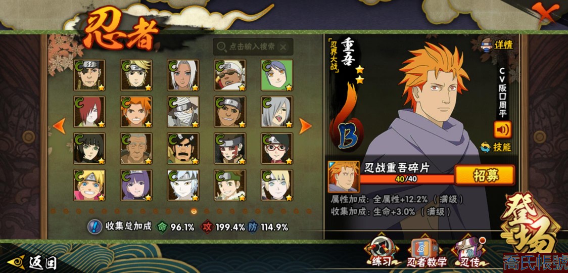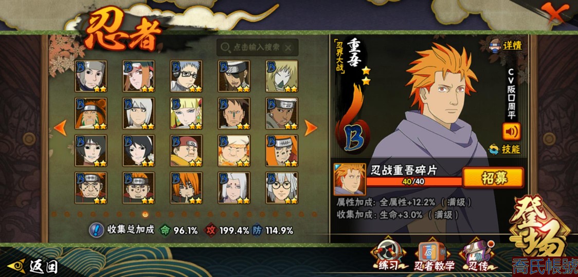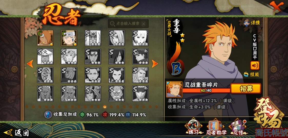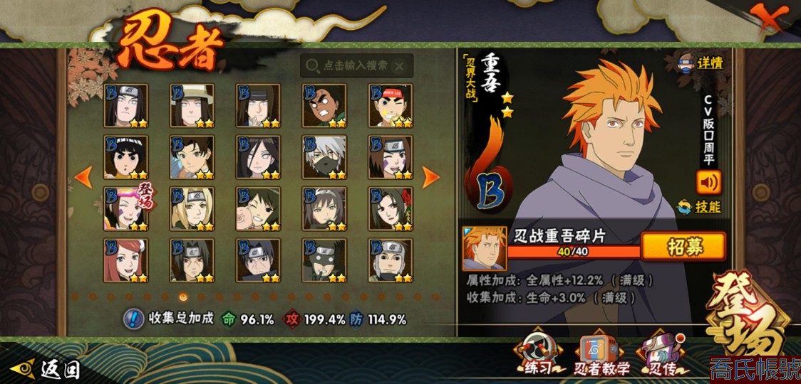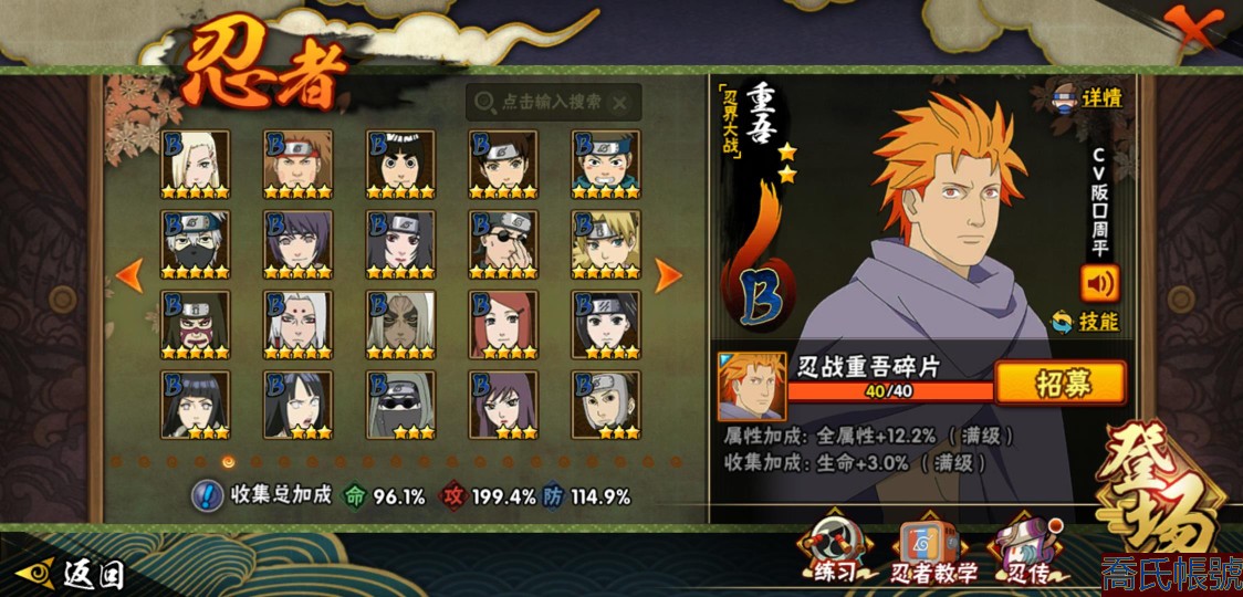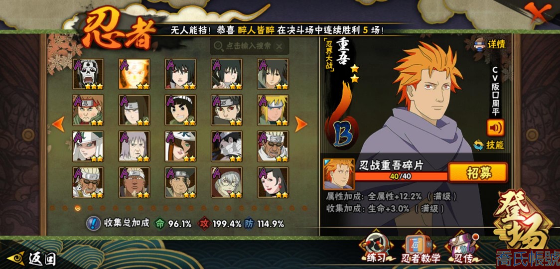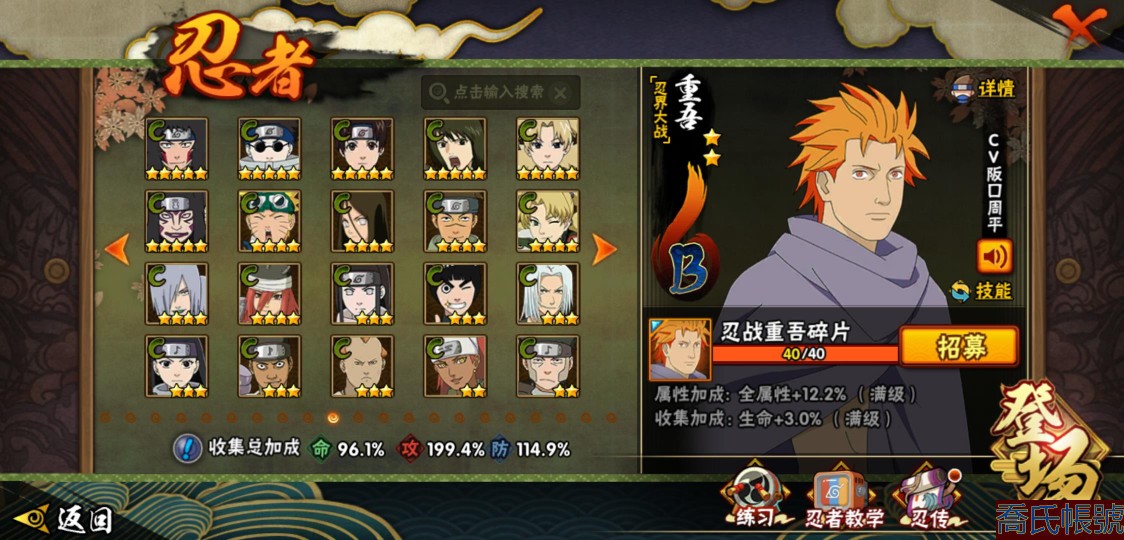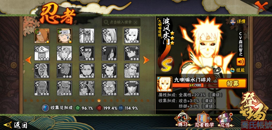 【OBHXDNK490442】戰鬥力:1539W+;段位:下忍3階;本服排名:193;戰區排名:未上榜;VIP12級;S忍33個;A忍42個;通靈獸24個;S忍:須佐能乎宇智波鼬(4星),暴怒第六尾漩渦鳴人,九喇嘛連結漩渦鳴人,永恆萬花筒宇智波佐助,忍界大戰春野櫻,須佐能乎旗木卡卡西,自來也,舞之豪傑自來也,傳說中的三忍自來也,大蛇丸,綱手,死門邁特凱,波風水門,穢土轉生波風水門,穢土轉生猿飛日斬,穢土轉生千手扉間,木葉創立千手柱間,穢土轉生千手柱間,宇智波斑,木葉創立宇智波斑,穢土轉生解宇智波斑,穢土轉生宇智波鼬,白面具宇智波斑,忍界大戰宇智波帶土,紅夜之刃神秘面具男,四代目風影羅砂,忍界大戰艾,忍界大戰大野木,天道佩恩,超佩恩天道,仙人模式藥師兜,大筒木桃式,大筒木金式;A忍:邁特凱(5星),猿飛阿斯瑪(5星),蠍(5星),幹柿鬼鮫(5星),疾風傳我愛羅(4星),飛段(3星),死司憑血飛段(3星),九尾查克拉漩渦鳴人,萬花筒寫輪眼宇智波佐助,須佐能乎宇智波佐助,宇智波泉奈,忍界大戰秋道丁次,忍界大戰日向寧次,忍界大戰李洛克,宇智波止水,青年波風水門,忍界大戰我愛羅,近松十人衛千代,五代目水影照美冥,穢土轉生桃地再不斬,奇拉比,忍界大戰奇拉比,青年艾,忍界大戰土臺,半蛇斗篷藥師兜,不緣,青年長門,漂泊浪客佩恩六道,小南,漂泊浪客小南,穢土轉生角都,曉大蛇丸,緋流琥蠍,宇智波鼬,迪達拉,穢土轉生迪達拉,羈絆神農,猿飛木葉丸,桃式顯現漩渦博人,五代目雷影達魯伊,六代目水影長十郎,四代目土影黑土;通靈獸:忍犬,藍蛇,蛤蟆吉,忍龜,鐮鼬,猿魔,砂之守鶴,山椒魚,蜃,蛤蟆仙人,鮫鯊,蛤蟆健,熊貓,蛞蝓,烏鴉,二尾又旅,,蛤蟆龍,蛤蟆廣,萬蛇,夢貘,鵺,鷹,蜘蛛;時裝:百戰佩恩天道,百戰大蛇丸,蜀面豪傑舞之豪傑自來也,百戰波風水門,百戰宇智波鼬須佐能乎,太極靈韻日向花火武當宗師,風之守護我愛羅忍界大戰,驚雷掠影達魯伊五代目雷影,血霧怪人幹柿鬼鮫,烈土霓裳黑土四代目土影,編織虛實宇智波鼬,緋櫻綻放春野櫻百豪,水之妖姬照美冥五代目水影,剎那的藝術迪達拉,熊貓少女天天峨眉宗師,傳說的光芒波風水門,龍的傳人李洛克截拳宗師;【1216】