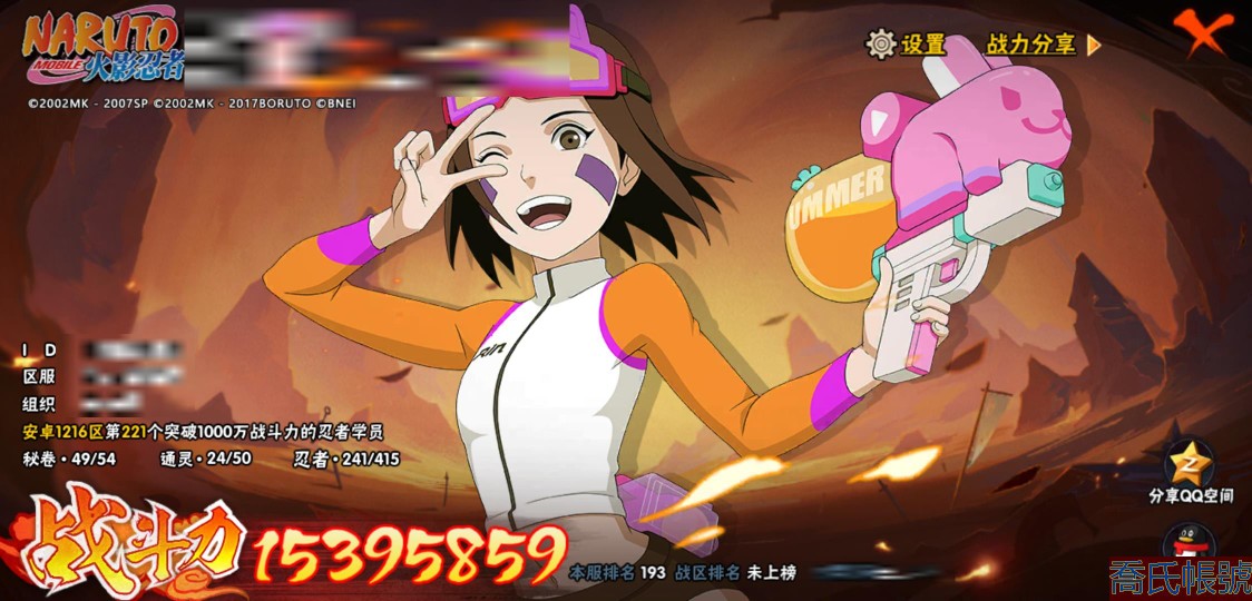 【11等】戰鬥力:1539W+;段位:下忍3階;本服排名:193;戰區排名:未上榜;V