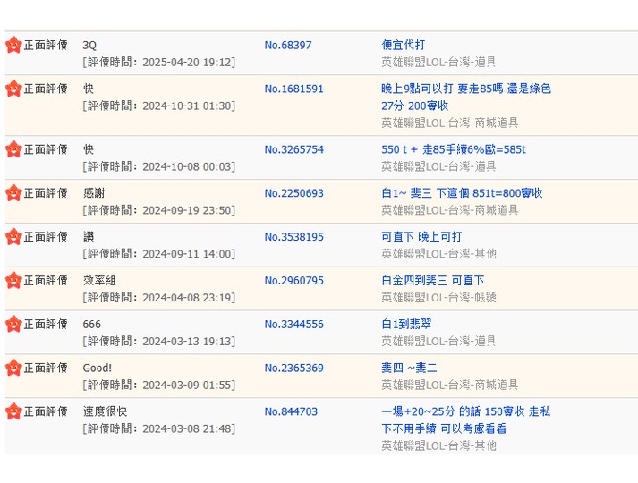以上皆為實收 有其他 情況 只打一場或是 bo5...等等 私訊或提問都可以