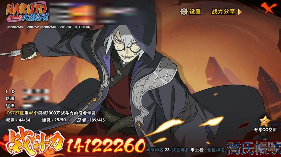 【OBHCRPR749142】戰鬥力:1412W+;段位:暗部1階;本服排名:23;戰區排名:未上榜;VIP15級;S忍18個;A忍45個;通靈獸25個;S忍:波風水門,暴怒第六尾漩渦鳴人,穢土轉生解宇智波斑,猿飛日斬,舞之豪傑自來也,須佐能乎旗木卡卡西,木葉創立千手柱間,傳說中的三忍自來也,須佐能乎宇智波鼬,須佐能乎宇智波止水,天道佩恩,大筒木桃式,最終章大筒木舍人,四代目風影羅砂,永恆萬花筒宇智波佐助,初代目風影烈鬥,綱手,忍界大戰艾;A忍:邁特凱,猿飛阿斯瑪,幹柿鬼鮫,蠍,旗木卡卡西,疾風傳我愛羅,飛段,桃式顯現漩渦博人,忍者之路神秘面具男,初始形態機械鳴人,須佐能乎宇智波佐助,俠隱江湖宇智波佐助,宇智波泉奈,百豪春野櫻,忍界大戰秋道丁次,忍界大戰日向寧次,忍界大戰李洛克,忍界大戰天天,最終章日向雛田,幻之真容旗木卡卡西,忍界大戰旗木卡卡西,穢土轉生猿飛阿斯瑪,新春限定波風水門,青年波風水門,新春限定我愛羅,夏日泳裝照美冥,穢土轉生桃地再不斬,忍界大戰土臺,俠隱江湖藥師兜,夏日泳裝小南,漂泊浪客小南,穢土轉生角都,緋流琥蠍,宇智波鼬,夏日限定宇智波鼬,迪達拉,穢土轉生迪達拉,新春限定迪達拉,死司憑血飛段,惡靈之影飛段,暴怒宇智波帶土,漂泊浪客宇智波帶土,俠隱江湖大野木,羈絆神農,四代目土影黑土;通靈獸:忍犬,藍蛇,蛤蟆吉,忍龜,鐮鼬,砂之守鶴,猿魔,山椒魚,蜃,蛞蝓,蛤蟆仙人,守鶴,鮫鯊,蛤蟆健,烏鴉,熊貓,蛤蟆龍,烏鴉夏日限定,蛤蟆廣,辛牙,萬蛇,夢貘,鷹;時裝:百戰佩恩天道,百戰宇智波鼬須佐能乎,蜀面豪傑舞之豪傑自來也,仲夏微光宇智波鼬夏日限定,太極靈韻日向花火武當宗師,終焉剎寂宇智波帶土漂泊浪客,純澈戀心日向雛田最終章,風之守護我愛羅忍界大戰,可愛睡衣漩渦鳴人,血霧怪人幹柿鬼鮫,緋櫻綻放春野櫻百豪,血紅辣椒旋渦玖辛奈少女,驕陽翠羽照美冥夏日泳裝,熊貓少女天天峨眉宗師;【727】【蘋果QQ】氪金2.6w 準24s 多198a 本期忍法帖已買 戰力指導已買 本服一組 在榜23