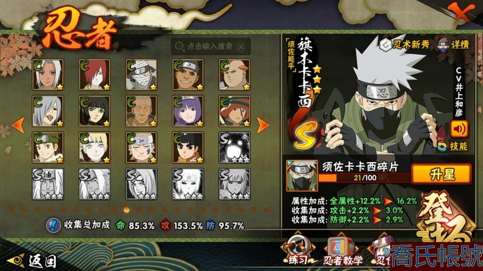 【OBHCRPR704642】戰鬥力:1385W+;段位:見習2階;本服排名:117;戰區排名:未上榜;VIP級;S忍28個;A忍30個;通靈獸20個;S忍:波風水門,穢土轉生三代目風影,九喇嘛連結漩渦鳴人,須佐能乎宇智波止水,死門邁特凱,須佐能乎宇智波鼬,大蛇丸,神秘面具男,白面具宇智波斑,猿飛日斬,穢土轉生解宇智波斑,二代目水影鬼燈幻月,大筒木桃式,忍界大戰大野木,大筒木金式,忍界大戰春野櫻,紅夜之刃神秘面具男,天道佩恩,綱手,木葉創立千手柱間,穢土轉生千手柱間,木葉創立宇智波斑,仙人模式自來也,須佐能乎旗木卡卡西,舞之豪傑自來也,永恆萬花筒宇智波佐助,忍界大戰宇智波帶土,忍界大戰艾;A忍:邁特凱,猿飛阿斯瑪,幹柿鬼鮫,疾風傳我愛羅,蠍,青年艾,九尾查克拉漩渦鳴人,須佐能乎宇智波佐助,忍界大戰秋道丁次,忍界大戰日向寧次,忍界大戰李洛克,宇智波止水,新春限定宇智波止水,青年波風水門,近松十人衛千代,五代目水影照美冥,奇拉比,青年長門,漂泊浪客佩恩六道,小南,漂泊浪客小南,曉大蛇丸,宇智波鼬,迪達拉,穢土轉生迪達拉,飛段,死司憑血飛段,桃式顯現漩渦博人,六代目水影長十郎,五代目雷影達魯伊;通靈獸:忍犬,藍蛇,砂之守鶴,蛤蟆吉,忍龜,鐮鼬,猿魔,山椒魚,蜃,蛤蟆仙人,鮫鯊,蛤蟆健,烏鴉,蛤蟆龍,蛤蟆廣,蛞蝓,夢貘,熊貓,萬蛇;時裝:百戰波風水門,百戰大蛇丸,蜀面豪傑舞之豪傑自來也,百戰佩恩天道,傳說的光芒波風水門,剎那的藝術迪達拉,飛瀑流泉長十郎六代目水影,水之妖姬照美冥五代目水影,龍的傳人李洛克截拳宗師,睿勇新星千手扉間少年,熊貓少女天天峨眉宗師,血霧怪人幹柿鬼鮫;【554】【蘋果QQ】