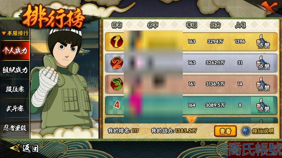 【11等】戰鬥力:1385W+;段位:見習2階;本服排名:117;戰區排名:未上榜;V