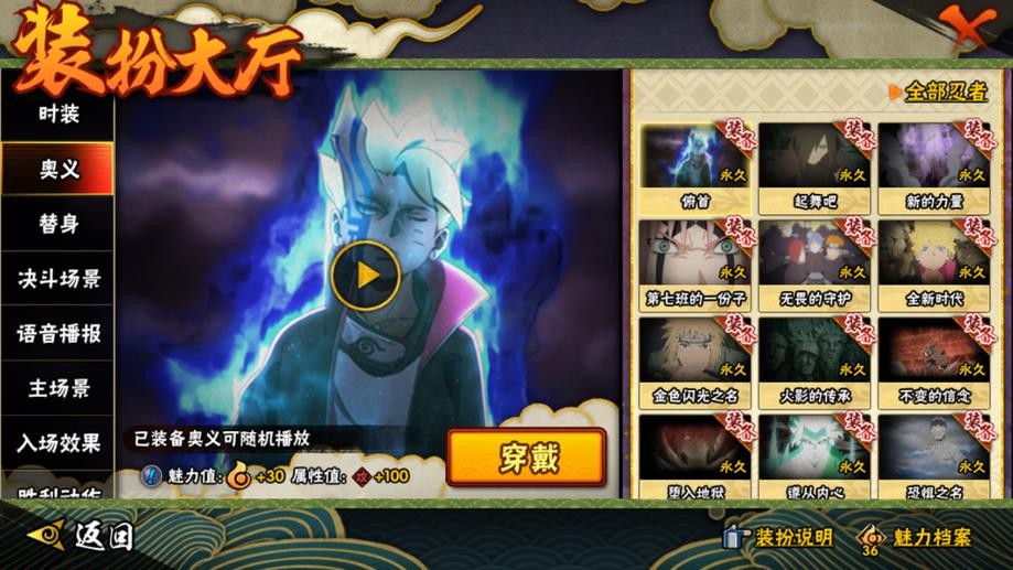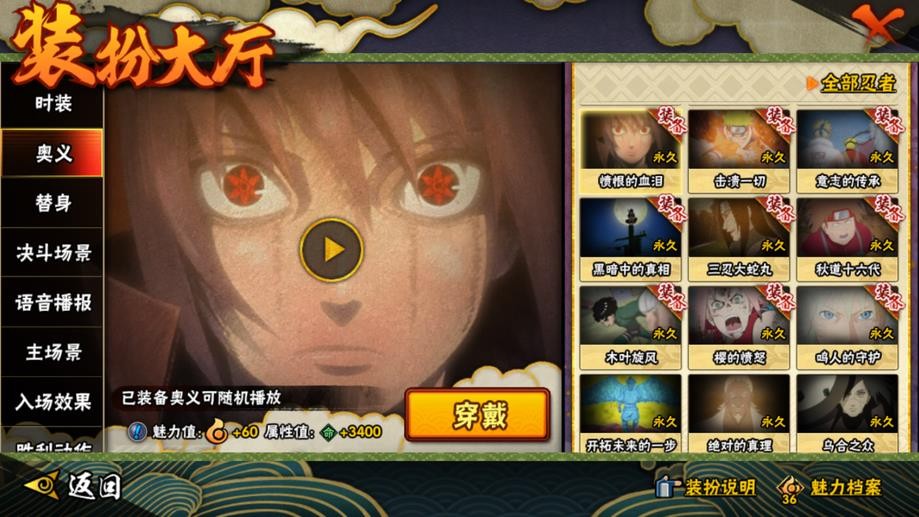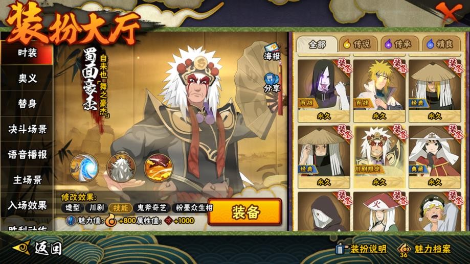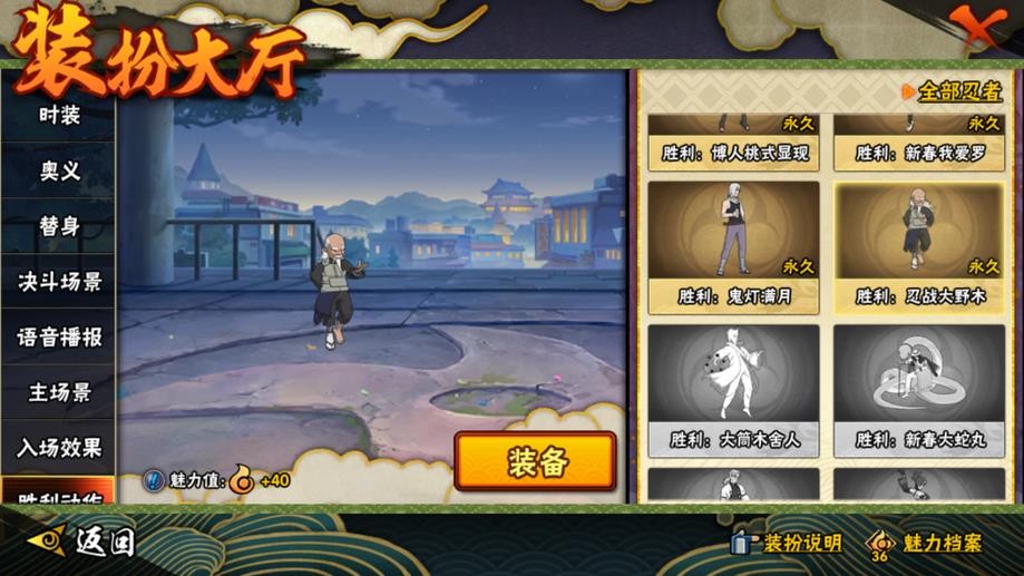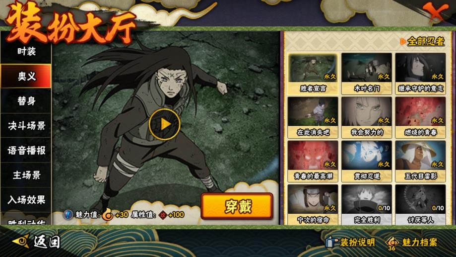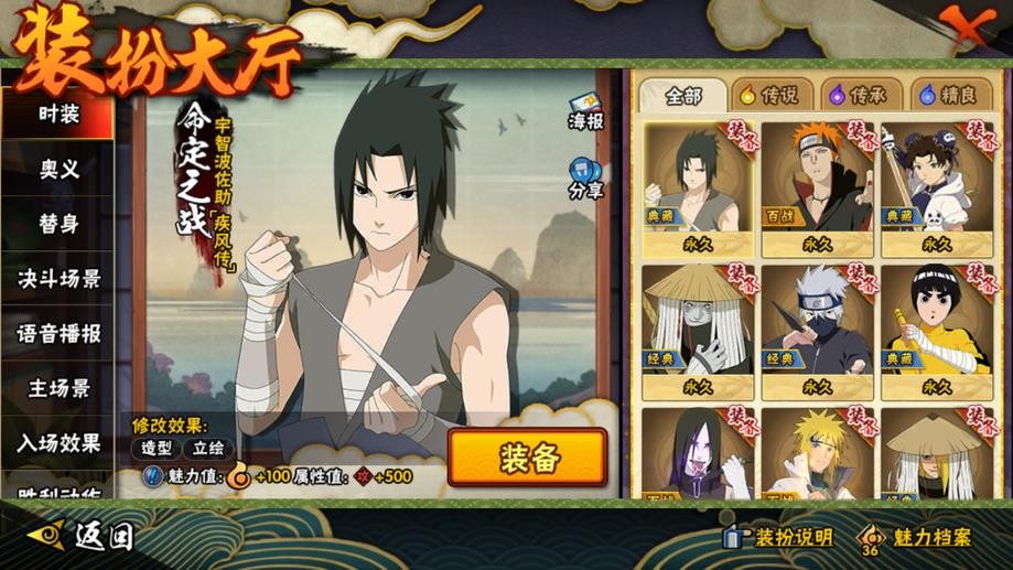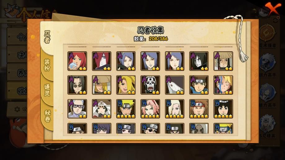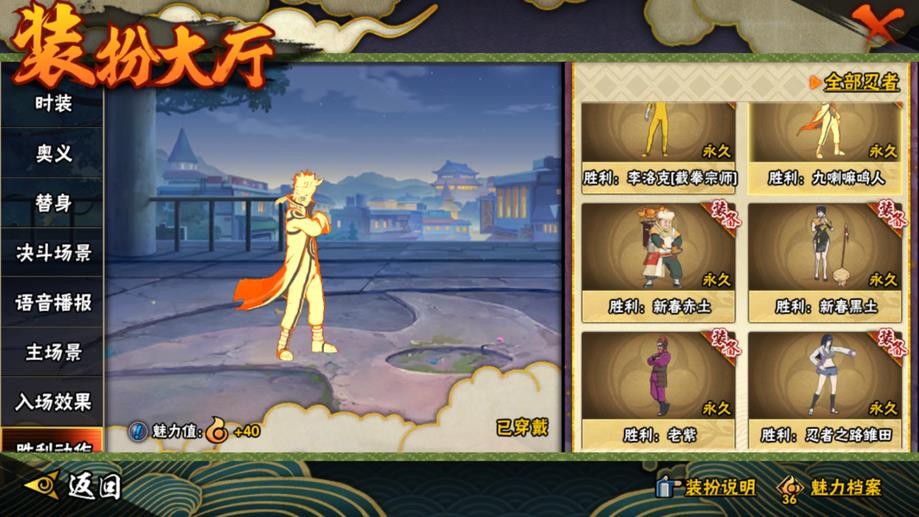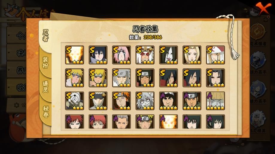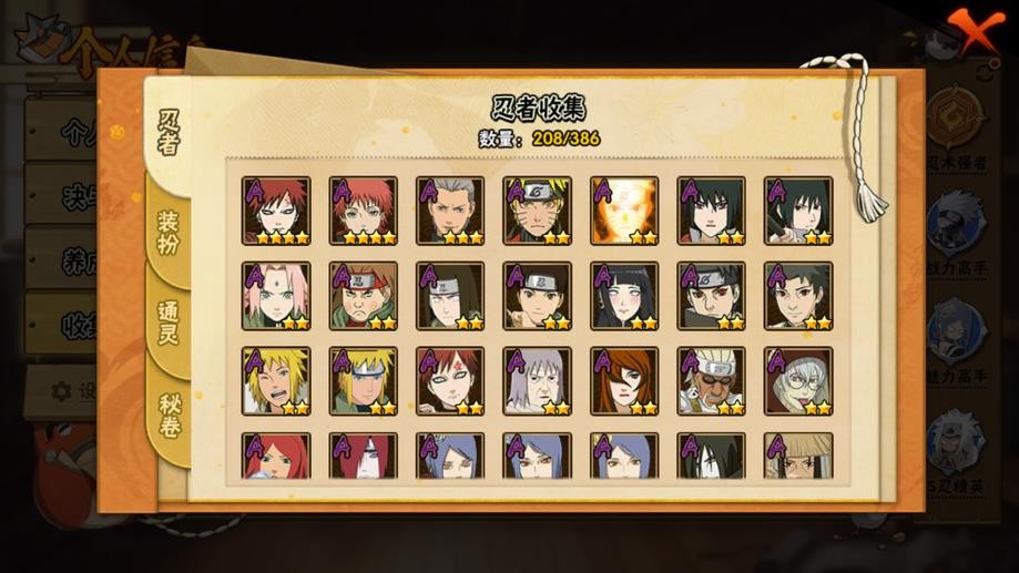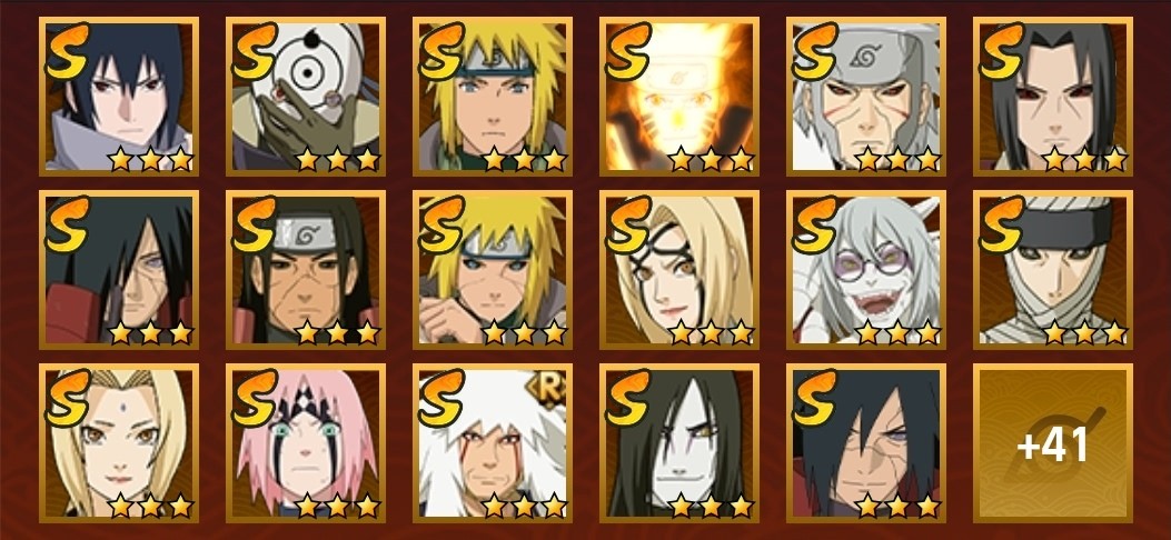 九喇嘛鳴人,永恆萬花筒佐助,忍戰櫻,舞之豪傑自來也,大蛇丸,綱手,百豪綱手,水門,穢土水門,穢土扉間,穢土柱間,穢土斑,穢土解斑,穢土鼬,白面具,二代土影,天道佩恩,仙人兜,凱,阿斯瑪,鬼鮫,疾風傳我愛羅,蠍,飛段,仙人鳴人,九尾鳴人,萬花筒佐助,須佐佐助,百豪櫻,忍戰丁次,忍戰寧次,忍戰天天,最終章雛田,止水,新春止水,新春水門,青年水門,忍戰我愛羅,近松十人衛千代,五代水影,忍戰奇拉比,斗篷兜,不風,青年長門,小南,泳裝小南,新春小南,曉大蛇丸,鼬,新春鼬,迪達拉,穢土迪達拉,死司飛段,暴怒帶土,博人傳木葉丸,桃式顯現博人,六代水影,博人傳黑土