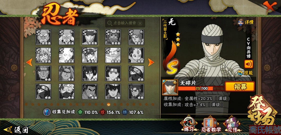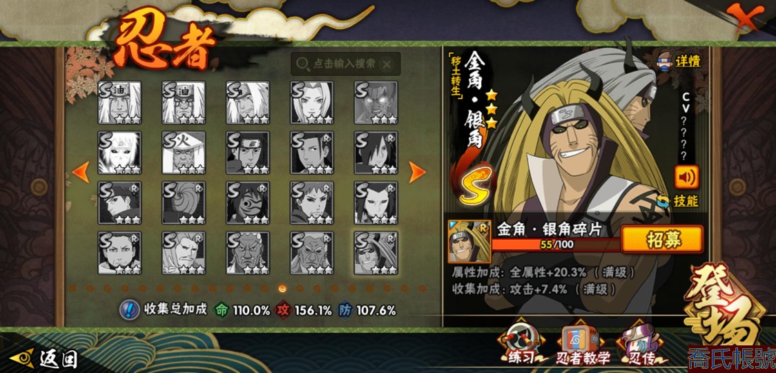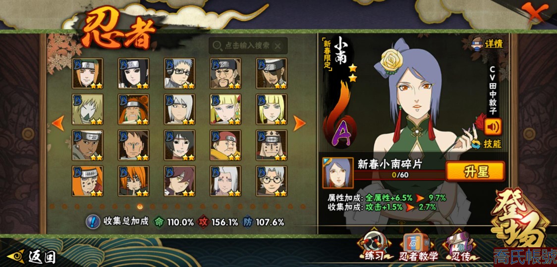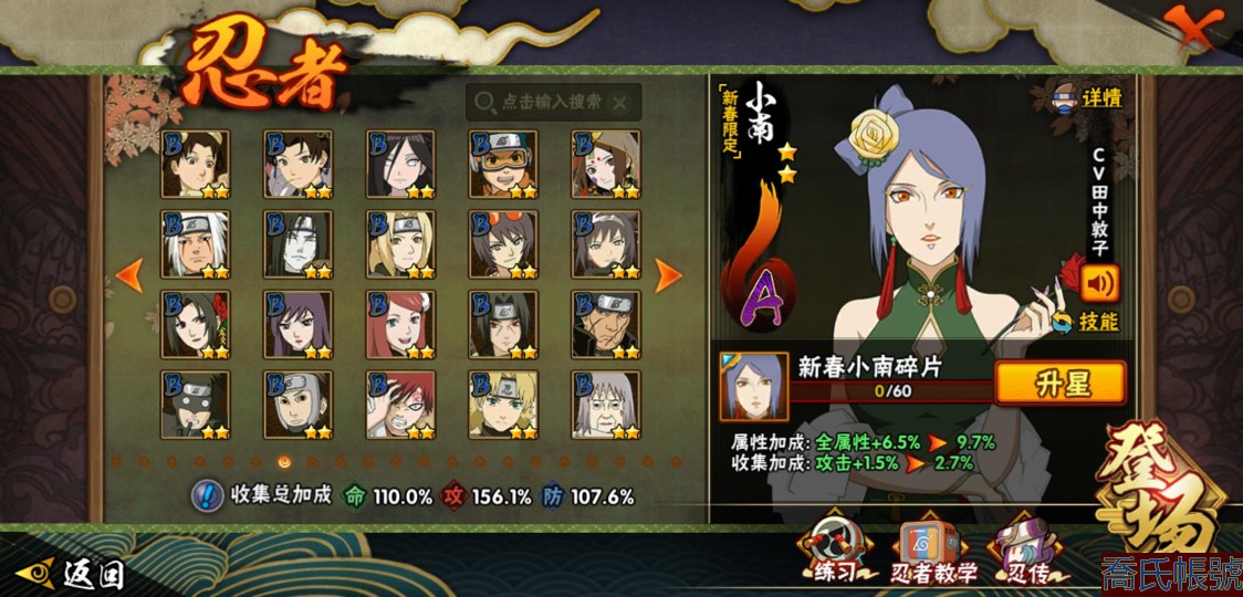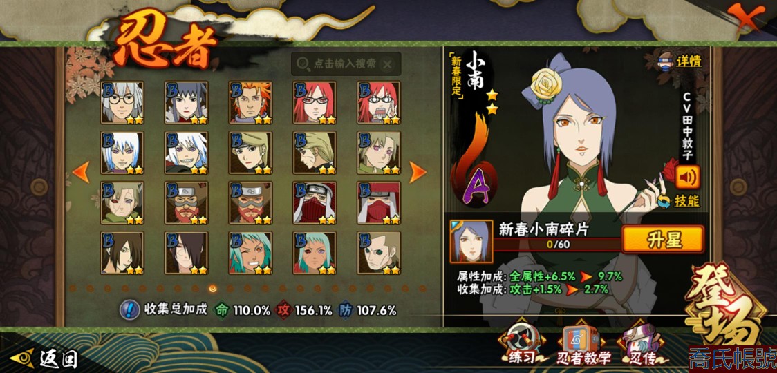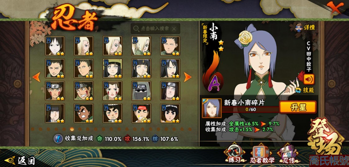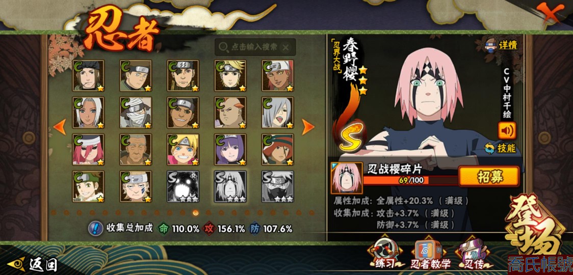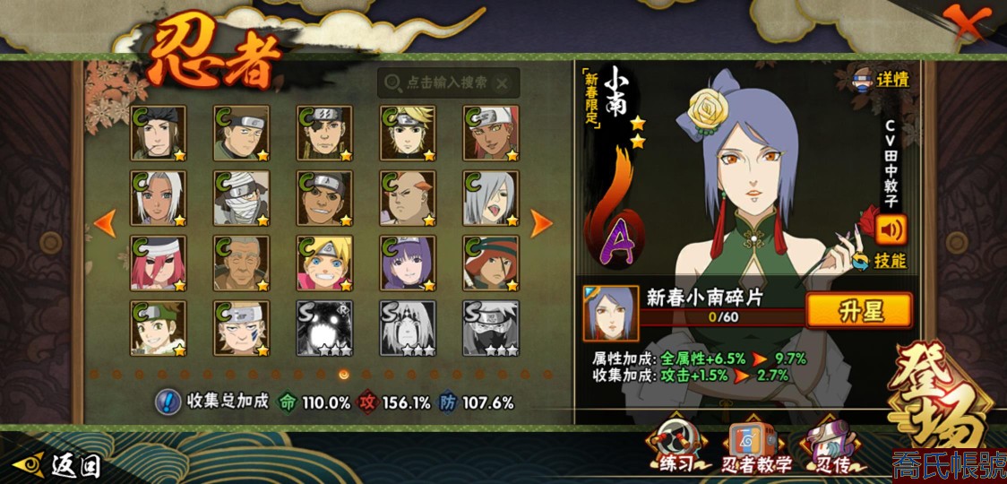 【11等】戰鬥力:1079W+;段位:上忍2階;本服排名:1074;戰區排名:未上榜;