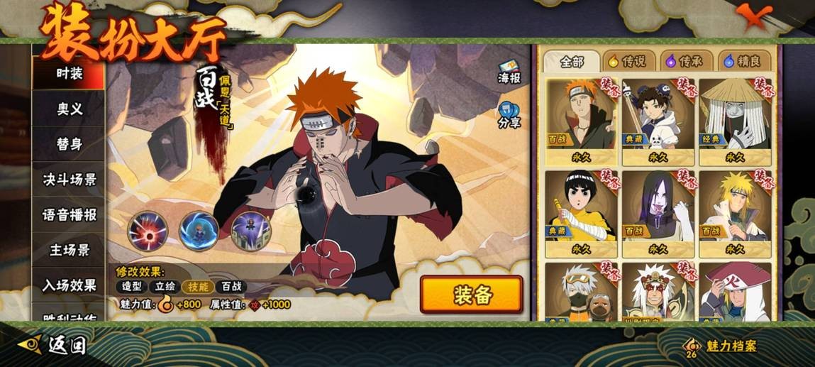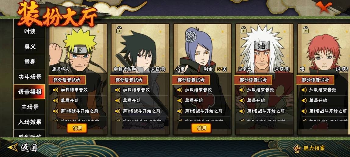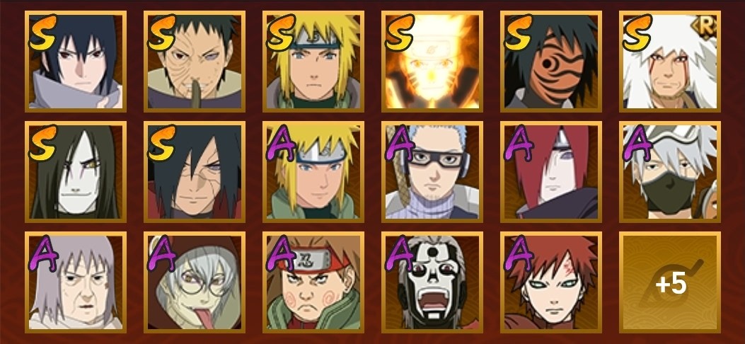 穢土解斑,忍戰帶土,舞之豪傑自來也,大蛇丸,水門,紅夜帶土,九喇嘛鳴人,永恆萬花筒佐助,青年水門,死司飛段,鬼鮫,凱,元氣卡卡西,忍戰丁次,近松十人衛千代,疾風傳我愛羅,桃式顯現博人,蠍,阿斯瑪,斗篷兜,六代水影,青年長門