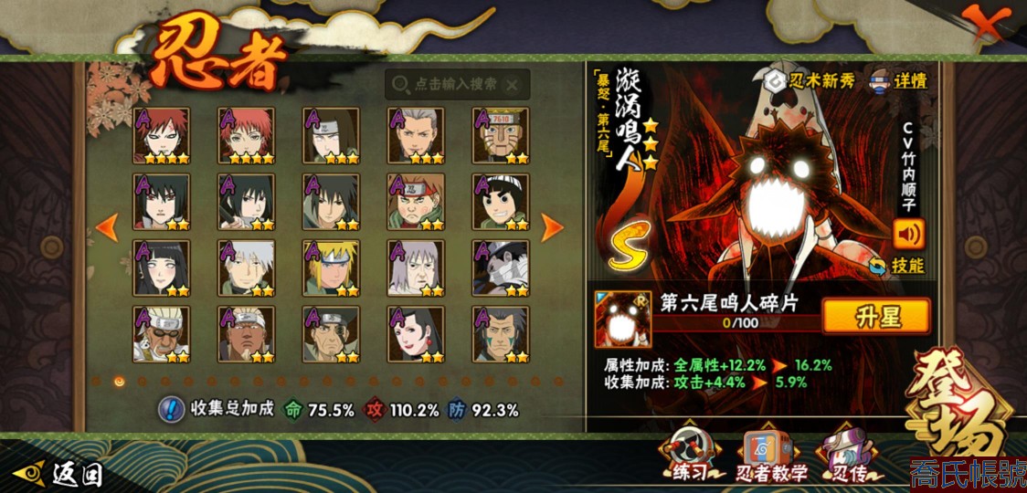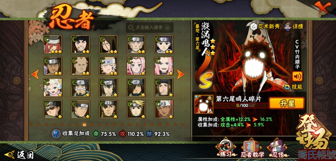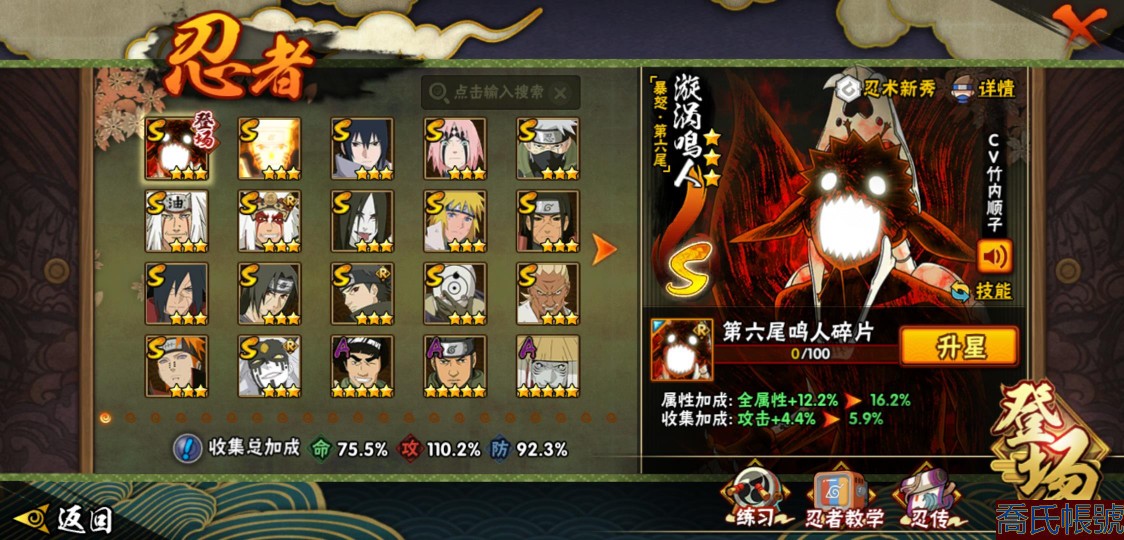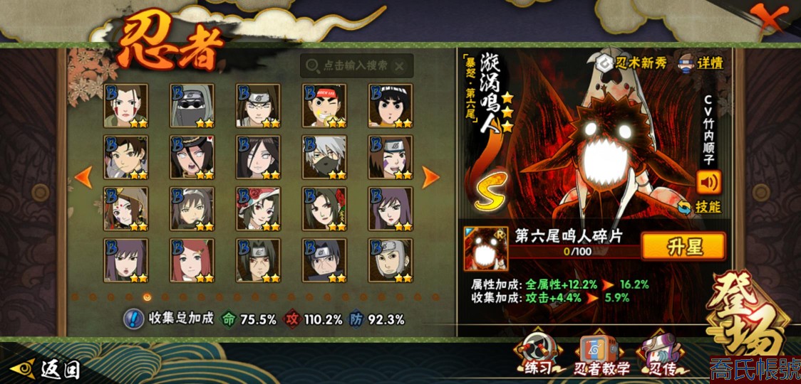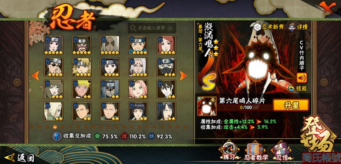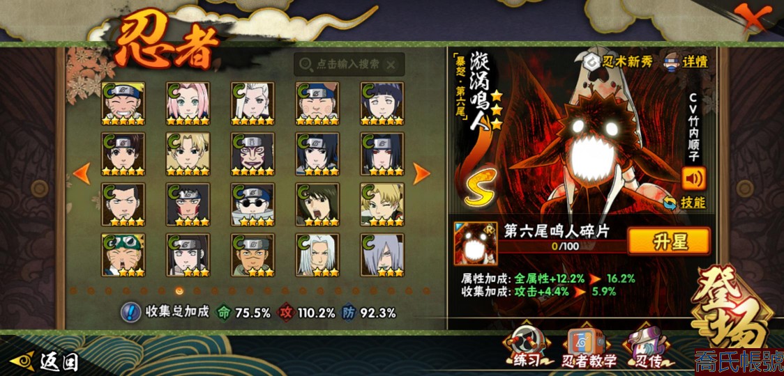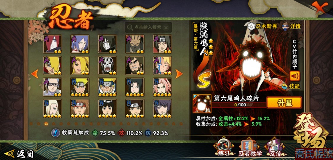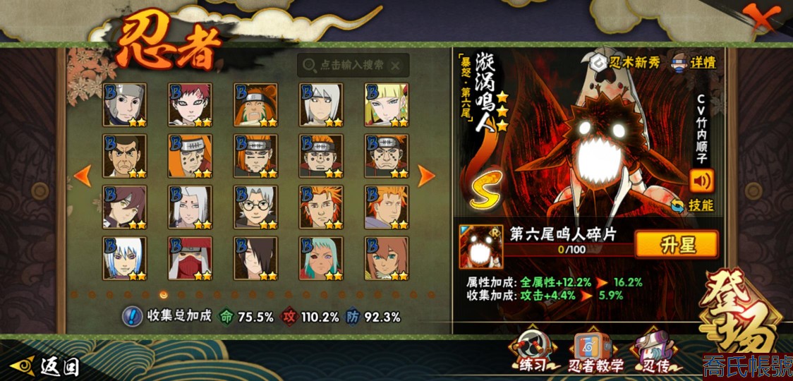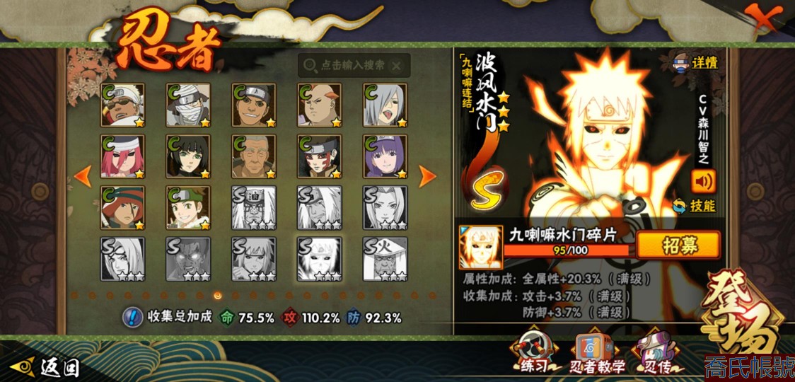 【OBHMWEL928642】戰鬥力:1117W+;段位:上忍3階;本服排名:273;戰區排名:未上榜;VIP10級;S忍17個;A忍34個;通靈獸20個;S忍:暴怒第六尾漩渦鳴人,九喇嘛連結漩渦鳴人,永恆萬花筒宇智波佐助,忍界大戰春野櫻,須佐能乎旗木卡卡西,自來也,舞之豪傑自來也,大蛇丸,波風水門,穢土轉生千手柱間,穢土轉生解宇智波斑,須佐能乎宇智波鼬,須佐能乎宇智波止水,白面具宇智波斑,忍界大戰艾,天道佩恩,大筒木桃式;A忍:邁特凱(5星),猿飛阿斯瑪(5星),幹柿鬼鮫(5星),疾風傳我愛羅(4星),蠍(4星),忍界大戰日向寧次(3星),飛段(3星),初始形態機械鳴人,萬花筒寫輪眼宇智波佐助,須佐能乎宇智波佐助,宇智波泉奈,忍界大戰秋道丁次,忍界大戰李洛克,最終章日向雛田,幻之真容旗木卡卡西,青年波風水門,近松十人衛千代,穢土轉生桃地再不斬,忍界大戰奇拉比,青年艾,忍界大戰土臺,不緣,不動,青年長門,漂泊浪客小南,曉大蛇丸,緋流琥蠍,宇智波鼬,迪達拉,穢土轉生迪達拉,死司憑血飛段,羈絆神農,桃式顯現漩渦博人,六代目水影長十郎;通靈獸:忍犬,藍蛇,蛤蟆吉,忍龜,鐮鼬,猿魔,砂之守鶴,山椒魚,蜃,蛤蟆仙人,鮫鯊,蛤蟆健,烏鴉,熊貓,蛤蟆龍,蛤蟆廣,蛞蝓,辛牙,夢貘;時裝:百戰大蛇丸,百戰宇智波鼬須佐能乎,蜀面豪傑舞之豪傑自來也,百戰佩恩天道,百戰波風水門,太極靈韻日向花火武當宗師,命定之戰宇智波佐助疾風傳,緋櫻綻放春野櫻百豪,熊貓少女天天峨眉宗師,血霧怪人幹柿鬼鮫,龍的傳人李洛克截拳宗師,傳說的光芒波風水門;【3074】