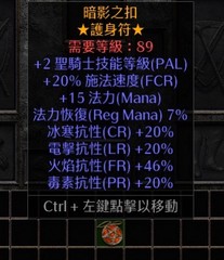 手工項鍊,2聖騎士技能,20施法,20全抗,46火抗