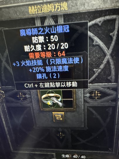 權冠,3火焰技能,20施法,2洞頭
