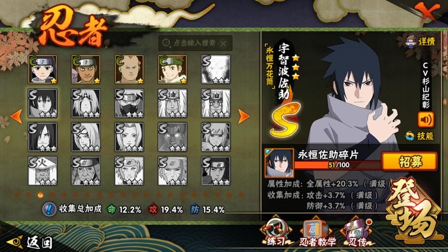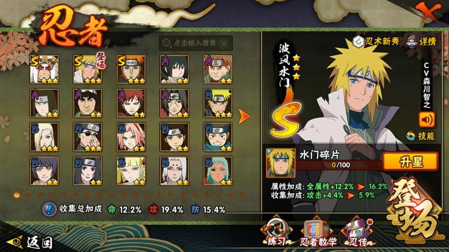 舞之豪傑自來也,水門,天道佩恩,須佐佐助,忍戰丁次,忍戰寧次,凱,疾風傳我愛羅,鼬