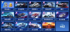 新手賽車,小哈,聖光使者,帝王,光電遊俠,刺客,積木,甜心號,南瓜車,愛神之吻,愛神之心,聖殿騎士,龍影,極地戰甲,橘神風暴,雙生戰神,魔王,極音戰歌,童趣單車,勞斯萊斯QEX,俠影傳說,凌天,天馬幻想,蘭博基尼傳奇,赤焰天啟,S-冰魄,神影,布偶虎,藍翔挖掘機,春戀花車,暗墟魔主,熾耀曙光,五菱鏡光,筋斗雲,S-時序使者,幻夜霓虹,遊遊福鯉,閃耀之星,山海·文鰩,審判之矛,赤焰騎士,大福蘆,織夢,瑪莎拉蒂MC20 Cielo,歡樂碰碰車,灼冰之舞·天霜,墨染青花,S-月影,酷喵雷諾,甜兔樂園,AE86,風達 FC3S,羊羊得意,微博大眼仔,花獅福佑,布加迪BOLIDE,龍珏雷諾,奇喵巫巫,比丟,科技先鋒,星河逐影,S-幻星,封印之杖,魔力小可,奇奇國王,萌動小汪,駕校傳說,拼拼樂,咿鴨遊,天外之星,颶風,幽水之淵,阿斯頓馬丁Valkyrie,鴨寶超人,舌尖新疆,花漾甜心