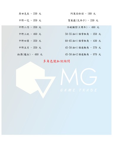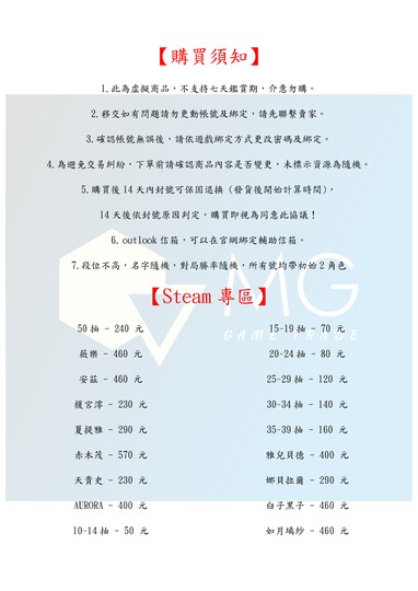 【初始號】【MG數碼】 台服 steam 多角色號 初始號 自抽號 自選號