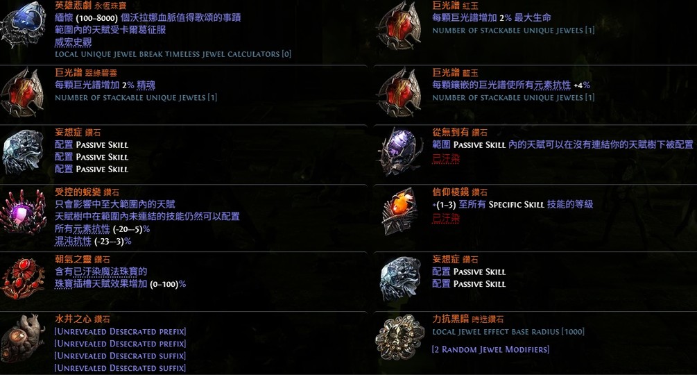 PoE2水井之心👌傳奇→英雄悲劇、巨光譜生命抗性精魂、妄想症、從無到有珠寶