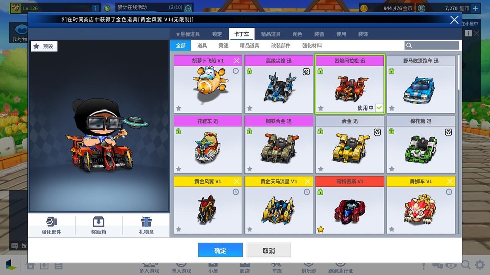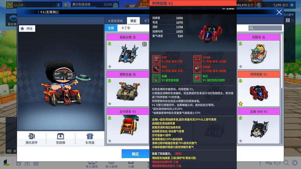 【國服】跑跑卡丁車陸服帳(阿緹密斯V1頂改+烈焰馬拉松迅,高圖鑑睡衣服飾底子號)