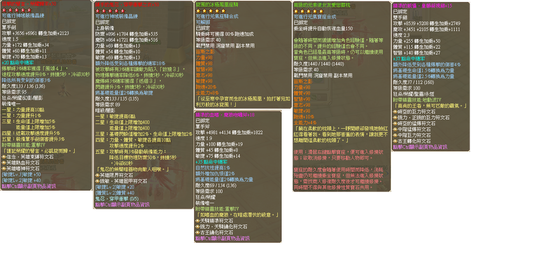 角色共用物品 : 100黃弓+15 聖黃戒+14 命倫戒+13