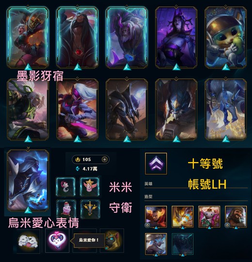 帳號LH→墨影戰士 犽宿、烏米愛你表情、米米守衛、十等 99T