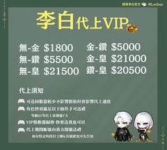 李白代上VIP價目表