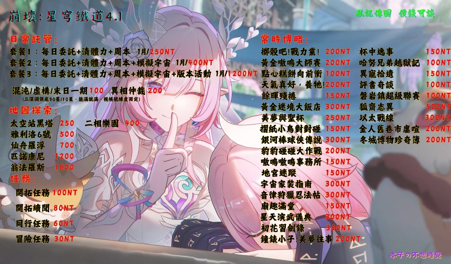 一天25,包月650 (需一次選擇7天以上才可代肝模擬宇宙)