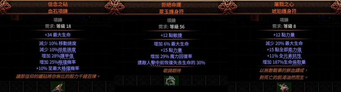 【多裝備賣場、護身符、項鍊】PoE2👌信念之砧.血石項鍊(最大格擋率)拒絕命運.翠綠、屠戮之心.琥珀