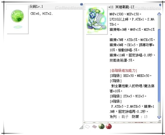 +11 無階 英雄靴LT(無插卡. 英雄勇氣.尖銳.L1)= 700T