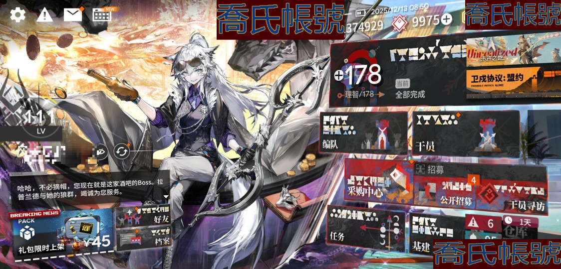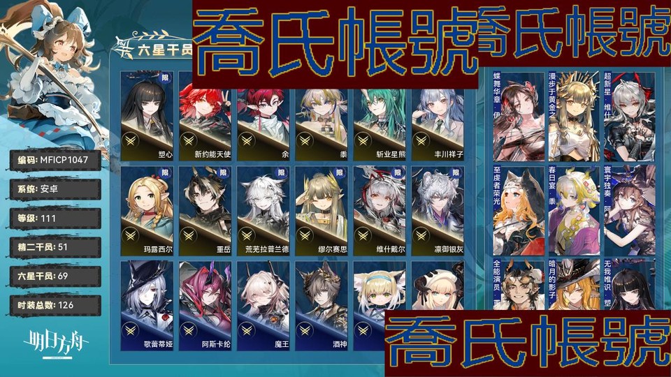 【OBMFICP104742】111級,69六星,51精二,4精一,合成玉數量:9975,源石數量:88,聯動幹員數量:14,時裝數量:126,精二六星:歌蕾蒂婭,塑心,阿斯卡綸,魔王,酒神,鈴蘭,夜鶯,閃靈,新約能天使,左樂,泥岩,早露,空弦,異客,伊芙利特,餘,伊內絲,凱爾希,黍,煌,斬業星熊,薇薇安娜,豐川祥子,銀灰,刻俄柏,赫德雷,史爾特爾,娜仁圖亞,棘刺,瑪恩納,燭煌,山,林,推進之王,瑪露西爾,重嶽,鐧,荒蕪拉普蘭德,斥罪,森蚺,維娜·維多利亞,電弧,塞雷婭,仇白,Mon3tr,邏各斯,繆爾賽思,維什戴爾,凜御銀灰,流明,鴻雪;精一六星:麥哲倫,弒君者,淬羽赫默,伺夜;六星幹員:歌蕾蒂婭,塑心,阿斯卡綸,魔王,酒神,鈴蘭,夜鶯,閃靈,新約能天使,左樂,泥岩,早露,空弦,異客,伊芙利特,餘,伊內絲,凱爾希,黍,煌,斬業星熊,薇薇安娜,豐川祥子,銀灰,刻俄柏,赫德雷,史爾特爾,娜仁圖亞,棘刺,瑪恩納,燭煌,山,林,推進之王,瑪露西爾,重嶽,鐧,荒蕪拉普蘭德,斥罪,森蚺,維娜·維多利亞,電弧,塞雷婭,仇白,Mon3tr,邏各斯,繆爾賽思,維什戴爾,凜御銀灰,流明,鴻雪,麥哲倫,弒君者,淬羽赫默,伺夜,斯卡蒂,嵯峨,霍爾海雅,靈知,赫拉格,萊伊,卡涅利安,溯光星源,黑,信仰攪拌機,瑕光,莫斯提馬,傀影,止頌;聯動幹員:導火索,八幡海鈴,祐天寺若麥,三角初華,醫生,齊爾查克,萊歐斯,若葉睦,豐川祥子,瑪露西爾,森西,雙月,羅小黑,泰拉大陸調查團;時裝:蝶舞華章·伊內絲,漫步於黃金之夢·繆爾賽思,超新星·維什戴爾,至虔者榮光·空弦,春日宴·黍,寰宇獨奏·阿米婭,全能演員·重嶽,暗月的影子·鐧,無我唯識·塑心,燃燒天穹下·伊內絲,不融冰·銀灰,流輝·夜鶯,列瑤臺·林,遠路·瑪恩納,殘餘·凱爾希,夏日餮宴·水月,字句中的雪原·鴻雪,今昔須臾之夢·異客,一人車隊·賈維,雨霓行遊客·流明,悠然假日HD71·寒檀,旋律的主人·豐川祥子,月下執行者·八幡海鈴,糖果暴擊·奧達,籠中歌者·三角初華,情熱魔術師·祐天寺若麥,提線的本我·若葉睦,玩伴·紅雲,家傳秘方·暴行,最初的頌歌·PhonoR-0,寄自奧格尼斯科·薇薇安娜,封面傭兵·石英,拭刀·刻刀,礫瓦·泥岩,玫瑰騎手·維荻,斜照·折光,易爆藍焰·煌,相位面容·錫人,雙料四分衛·THRM-EX,隨意而行·蘇蘇洛,我即潮汐·歌蕾蒂婭,記敘·斥罪,悠然假日HD61·蜜蠟,泰拉冒險·瑪露西爾,地底三百米·暴行,從容時刻·翎羽,鋒潮·棘刺,律動方格·琳琅詩懷雅,遠行的季節·松果,主修領域·地靈,單刀·炎客,霜林醉·仇白,夏卉FA317·琴柳,夏卉FA062·桃金娘,悠然假日HD29·安比爾,奇工妙想·星極,衣縷往昔·梓蘭,山川的釀造·帕拉斯,廊下游·寒芒克洛絲,火樹靈·布丁,繪聲繪影·深海色,喜夜侍者·澄閃,風雪邀請·史都華德,遙鄉之徑·夏櫟,躍上街頭·泰拉大陸調查團,春之頌·鈴蘭,組間休息·布洛卡,偽裝·宴,無痕行者·安德切爾,荒野之後·蜜莓,超級斷罪朋友·斷罪者,幽谷奏鳴·石棉,海岸救援改裝·Lancet-2,黑曜石·泥岩,無拘無束·刻俄柏,縱身一躍·傑克,妙手玄心·阿,傑作·早露,悠然假日HD31·華法琳,安息處的怪盜·卡達,夏卉FA018·艾雅法拉,淺灘律動·藍毒,夏卉FA026·蘇蘇洛,熔鍛鑄匠·森蚺,天際線·黑,霜息·赫默,古堡清潔專家·阿消,皇后一號·風笛,荒原行者·普羅旺斯,無形悼挽·獅蠍,遺石·推進之王,馭浪WR04·斯卡蒂,幽靜·白麵鴞,見習聯結者·阿米婭,堅城·塞雷婭,典雅噩兆·拉普蘭德,輓歌·夜鶯,威塞克斯的信件·玫蘭莎,報童·阿米婭,魔術師·克洛絲,守歲人·芙蓉,小鬼當家·暗索,快樂衛士·卡緹,靜謐午夜DN02·閃靈,十字郡·芬,悠然假日HDm06·安賽爾,孤攀客·崖心,君子蘭·傑西卡,未知的旅行·遠山,植物種志·調香師,辛味·末藥;【官方賬號】