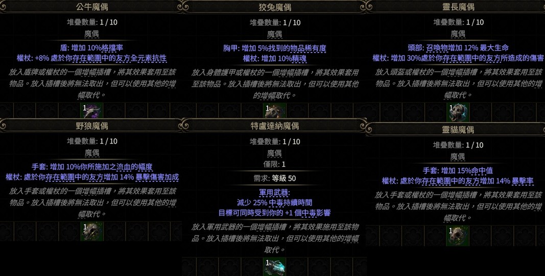 【其他、魔偶裝備插槽】PoE2👌特盧達納中毒)靈貓(命中)義許塔(消耗效率)馬薩里斯(護符)野豬盛怒