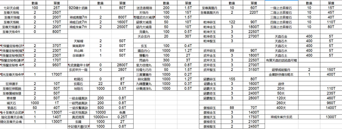 弱化藥劑1.5t 伏羲0.6t 正露丸3t