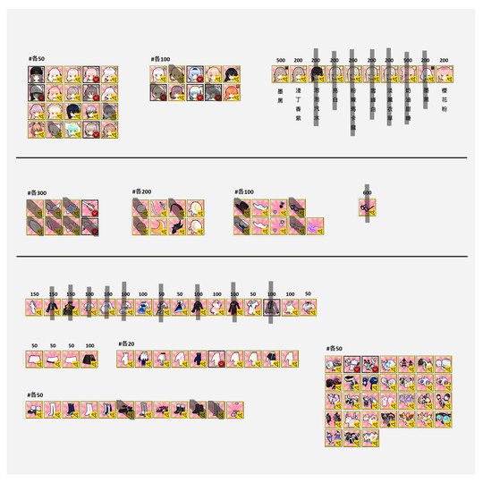 價格如圖,皆實收,劃掉=售出。