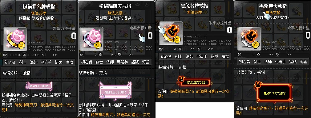 【名牌戒指】粉貓貓名牌聊天/娜歐.黑貓貓.楓之谷偶像.惡夢名牌戒指