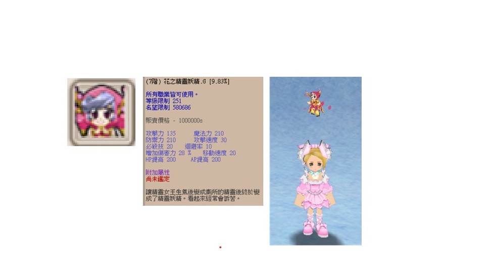 元元.花之精靈妖精G+0.(屬性如圖).聖賢.真聖.回鍋.甜美.少女.真花