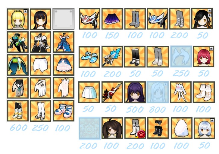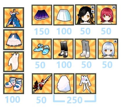 我出衣架: 髮上下+81、手鞋+42、武器飾品+111、連身+156